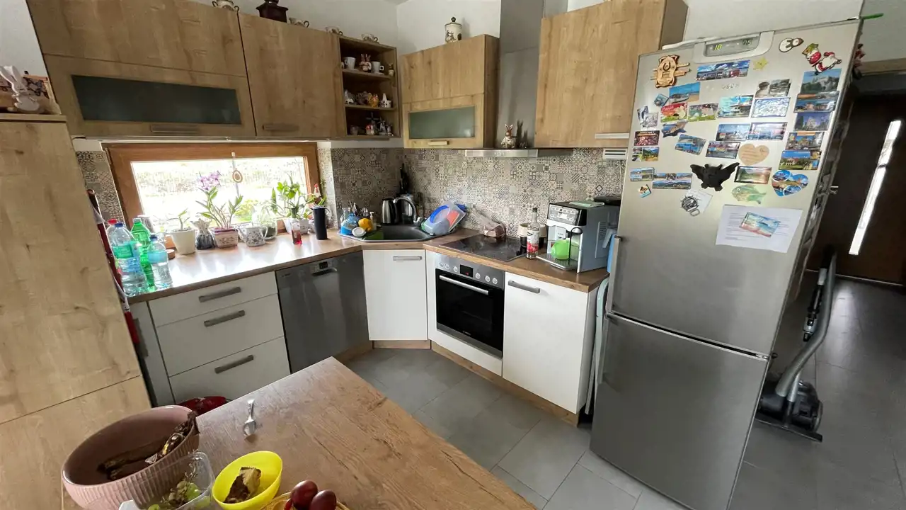 Dane techniczne: Kanalizacja ; ogrzewanie i ciepła woda (piec 2-funkcyjny) ; siła ; internet ; alarm ; ;w ogrodzie zbiornik na deszczówkę 2000l.