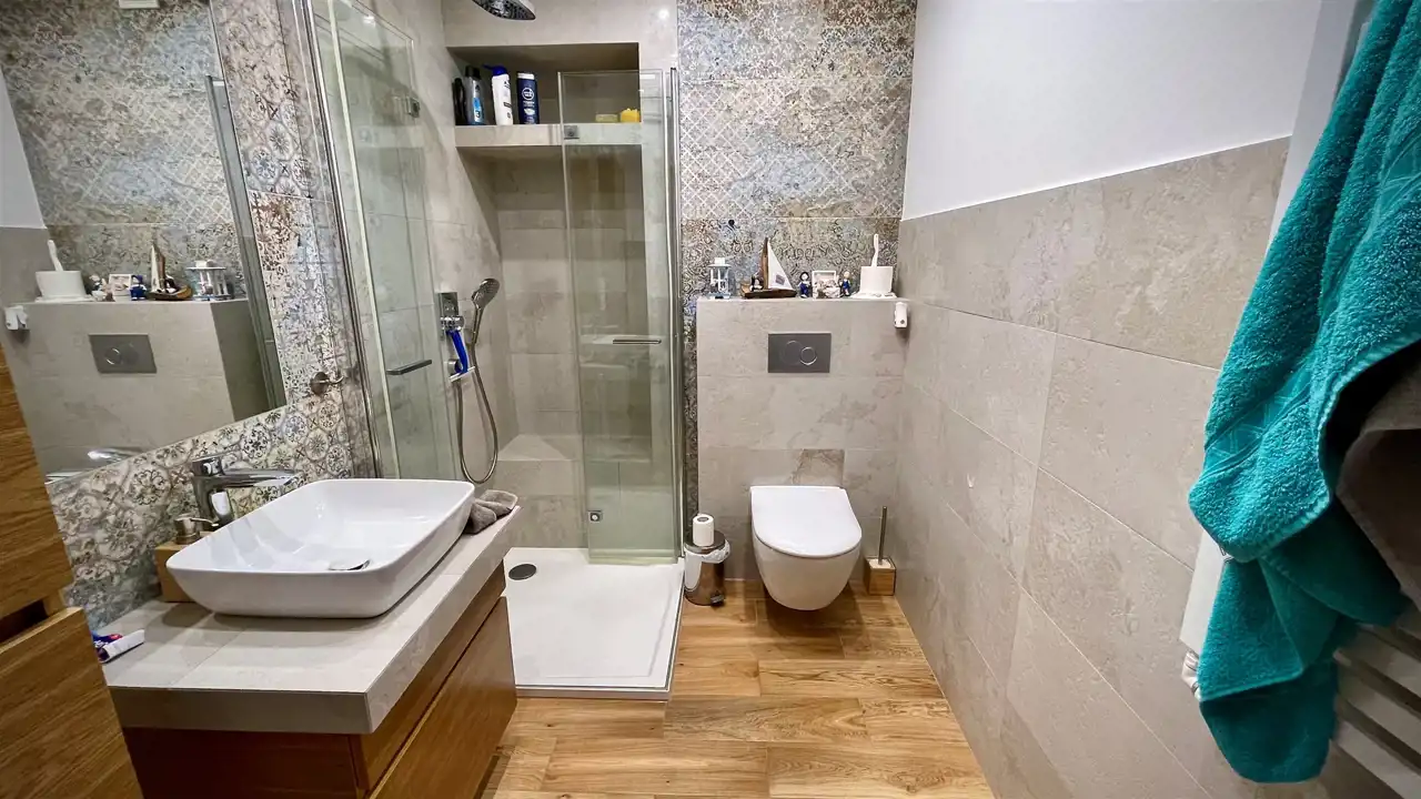 - Media Ogrzewanie: piec dwufunkcyjny; Woda: ciepła - piecyk; Kanalizacja: tak; Prąd: jest; Gaz: jest