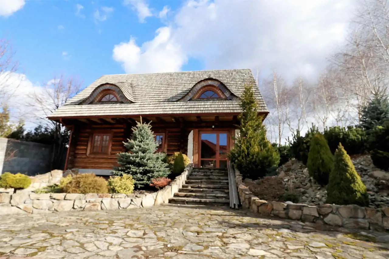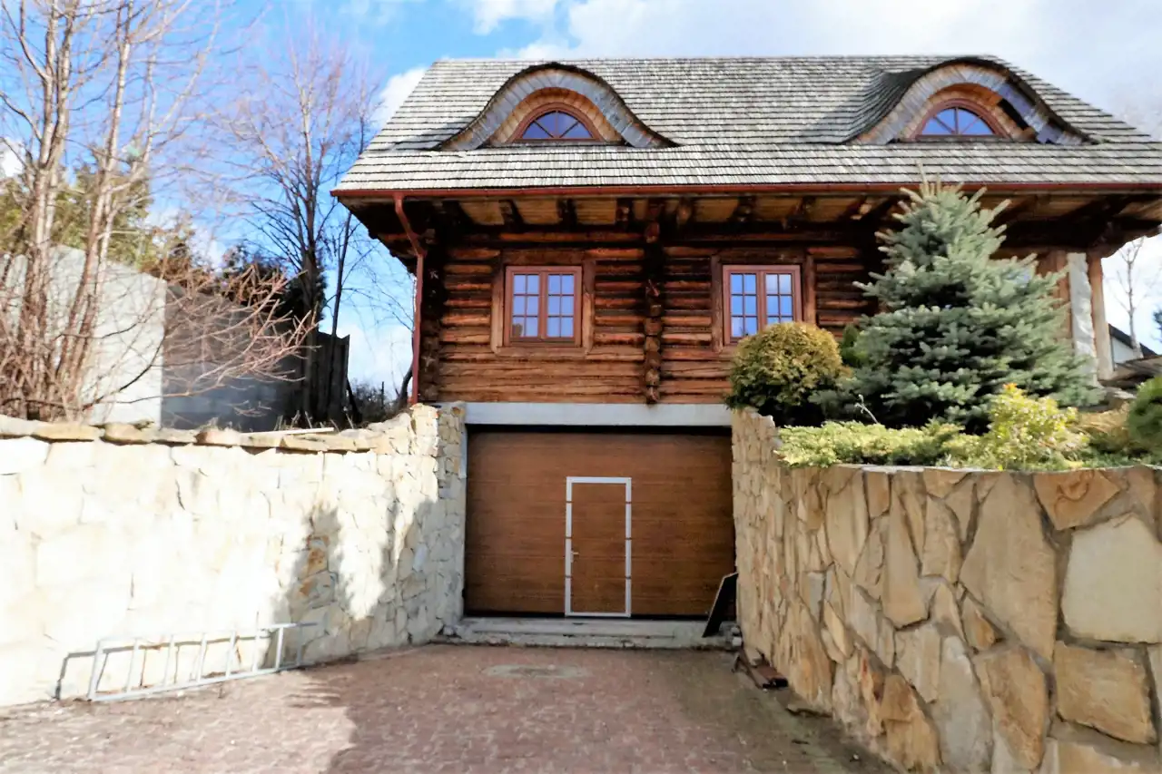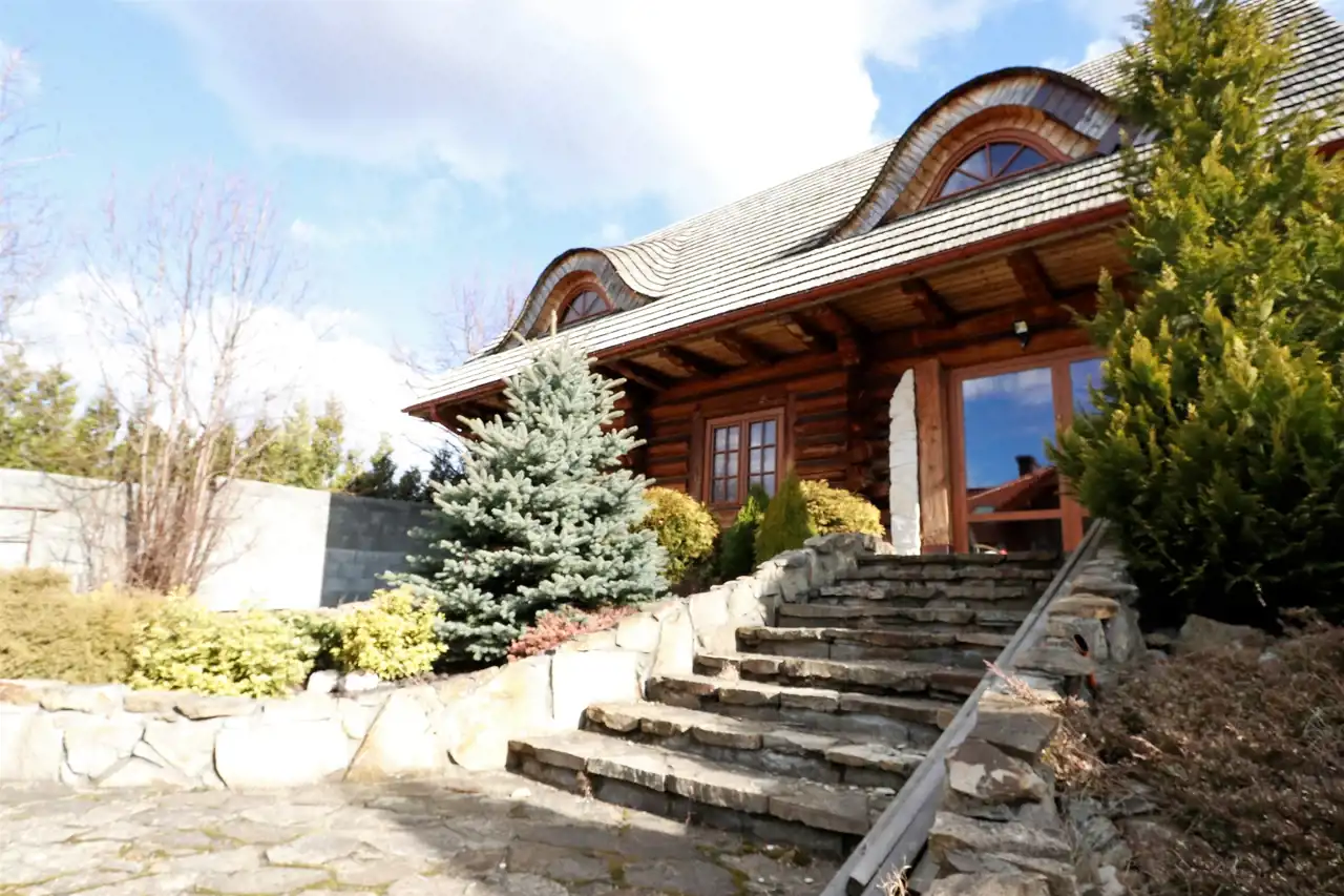 Na terenie posesji znajduje się domek dla gości z bali drewnianych o pow . 160 m2 , z podziemnym murowanym garażem wielostanowiskowym . Dom postawiony przez znaną firmę góralską w 2012 roku . Dom posiada duży salon z otwartą kuchnią , pomieszczenie gospodarcze , na górze otwarta przestrzeń , łazienka . Dom ogrzewany gazowo , kaloryfery .
