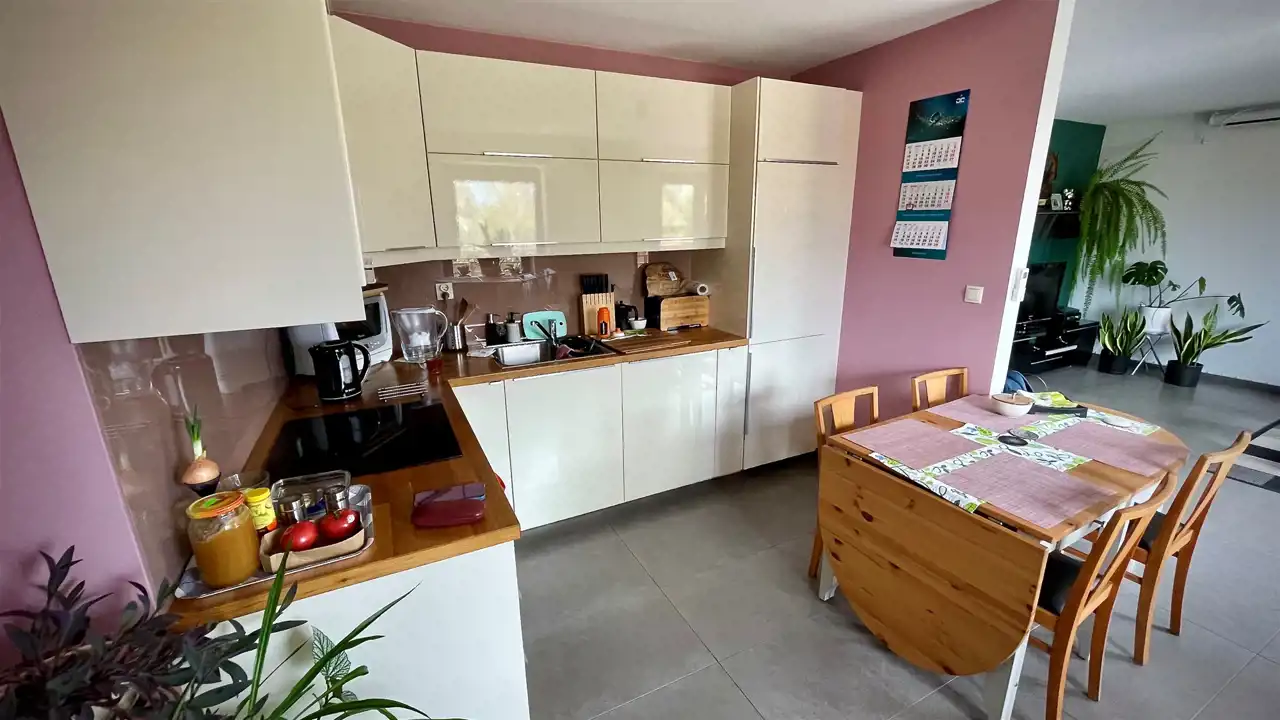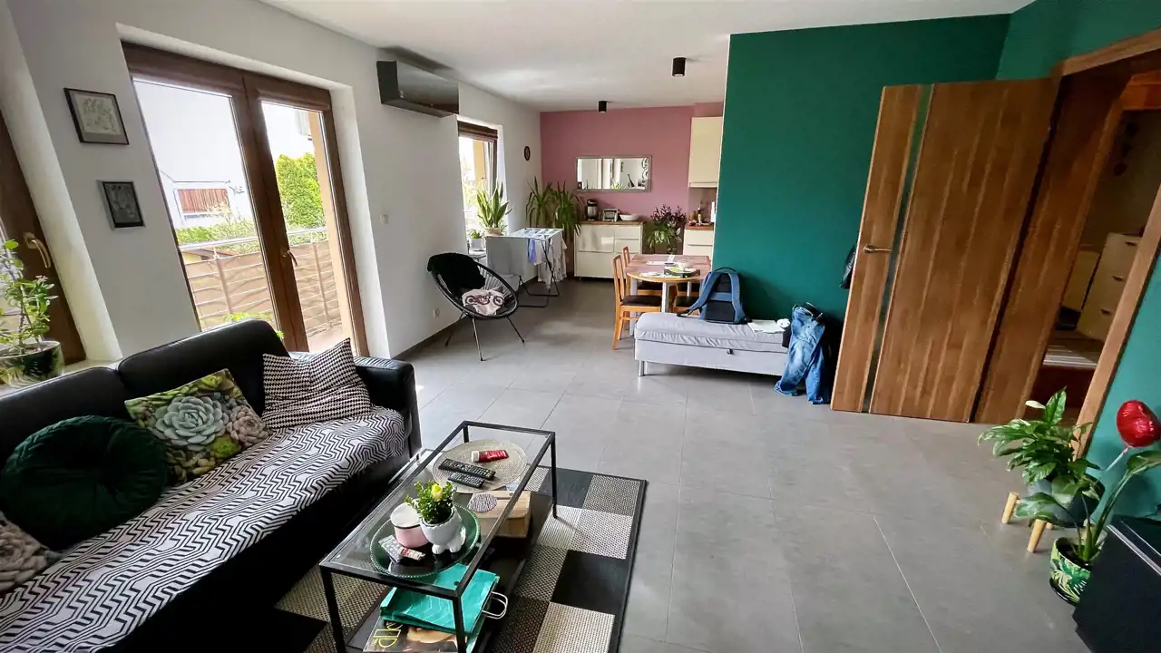 Mieszkanie usytuowane jest na 2 piętrze w 2 piętrowym bloku z 2014 roku. Mieszkanie składa się z przedpokoju ; salonu dziennego połączonego z kuchnią ,dwóch sypialni ; 2 - balkonów, łazienki z WC ; garażu oraz komórki lokatorskiej. Okna z PCV , ekspozycja 2-stronna (północ; południe).