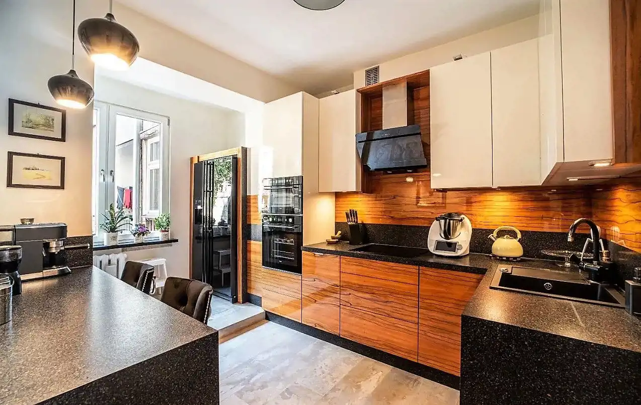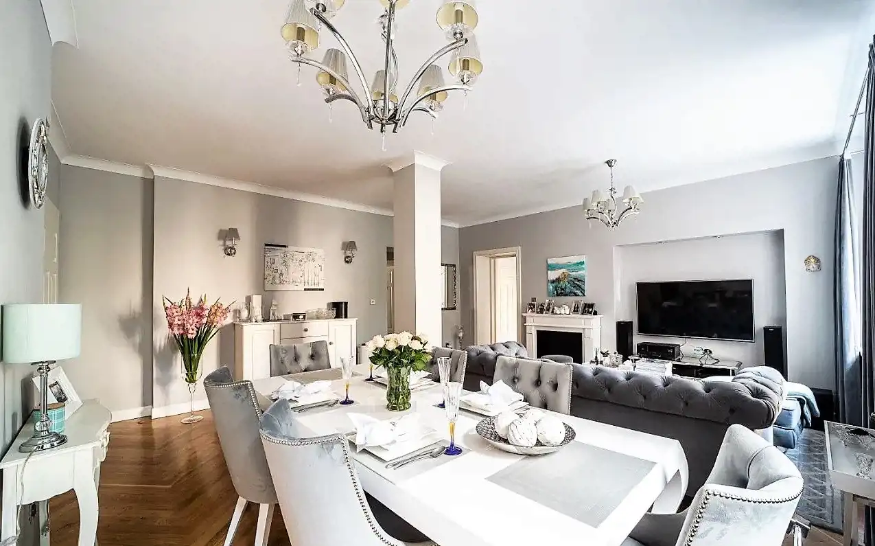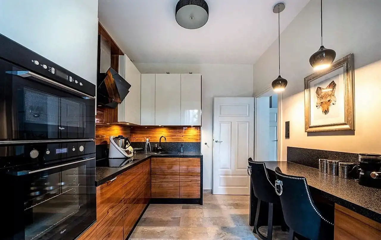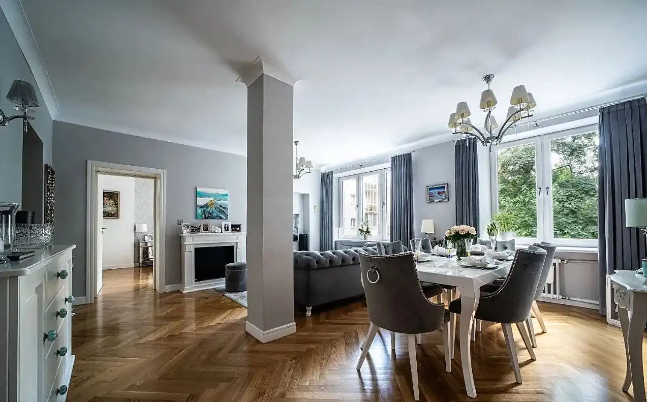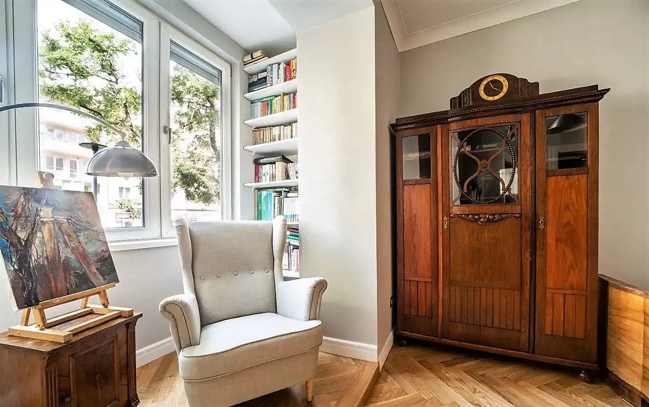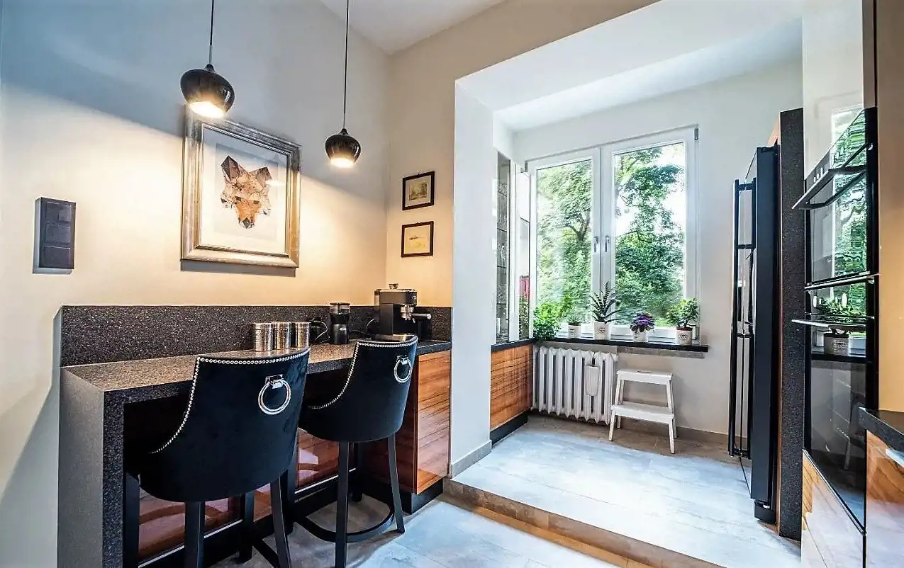 Mieszkanie zostało wyremontowane w 2020 roku, natomiast generalny remont został przeprowadzony w 2015 roku (m.in. wymiana instalacji, podłóg, drzwi, okien), jest zaprojektowane z dbałością o najmniejszy szczegół i wykonane z materiałów najwyższej jakości. Apartament jest w pełni wyposażony, wiele mebli było wykonanych na indywidualne zamówienie.
