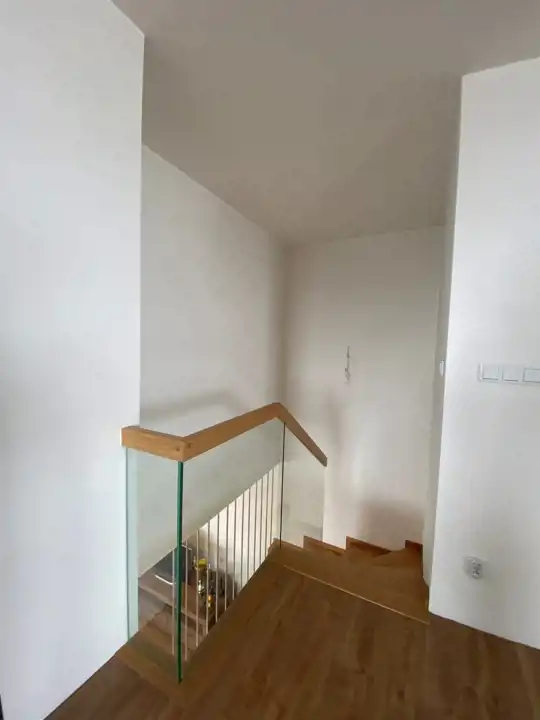 W mieszkaniu dębowe schody.