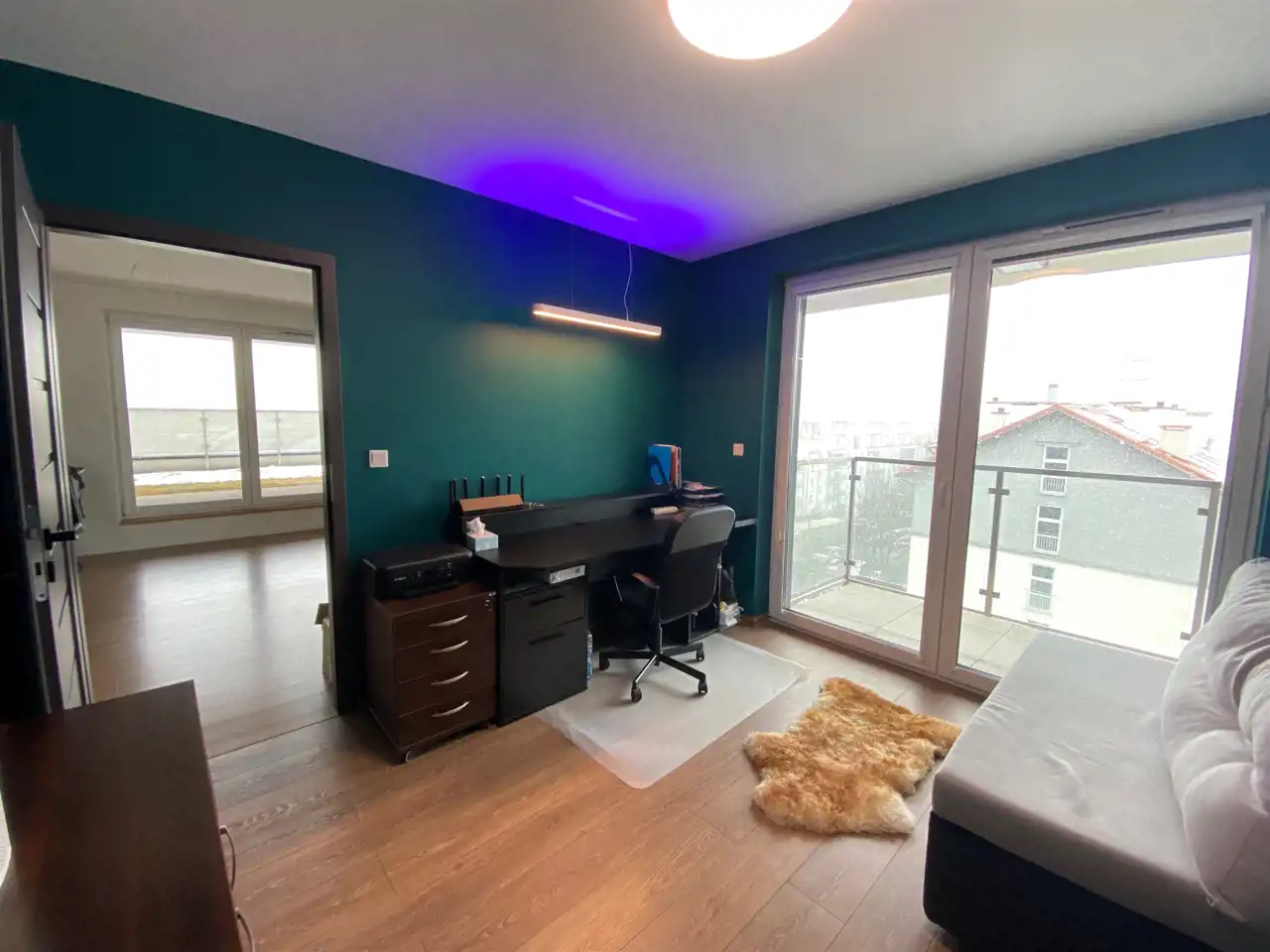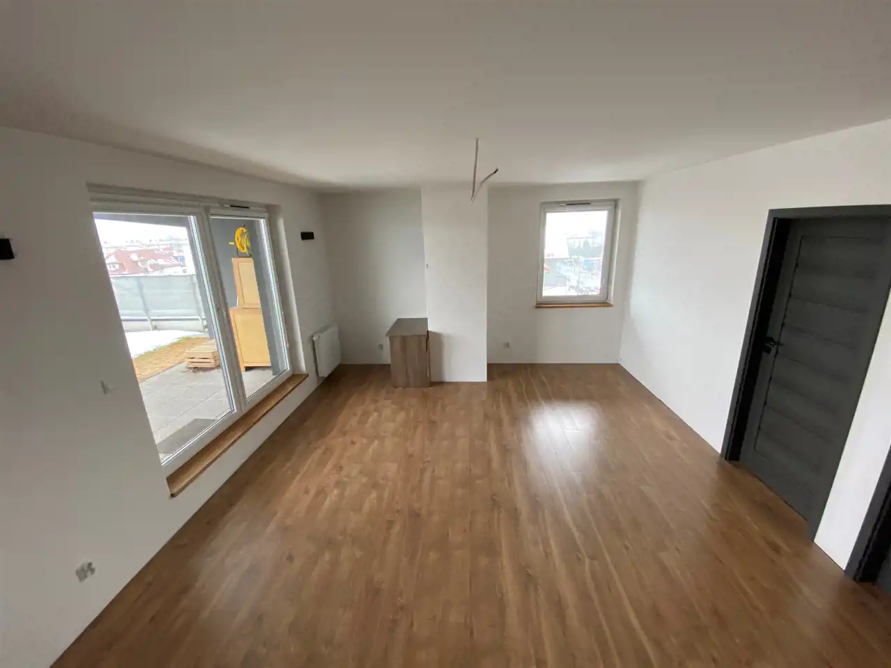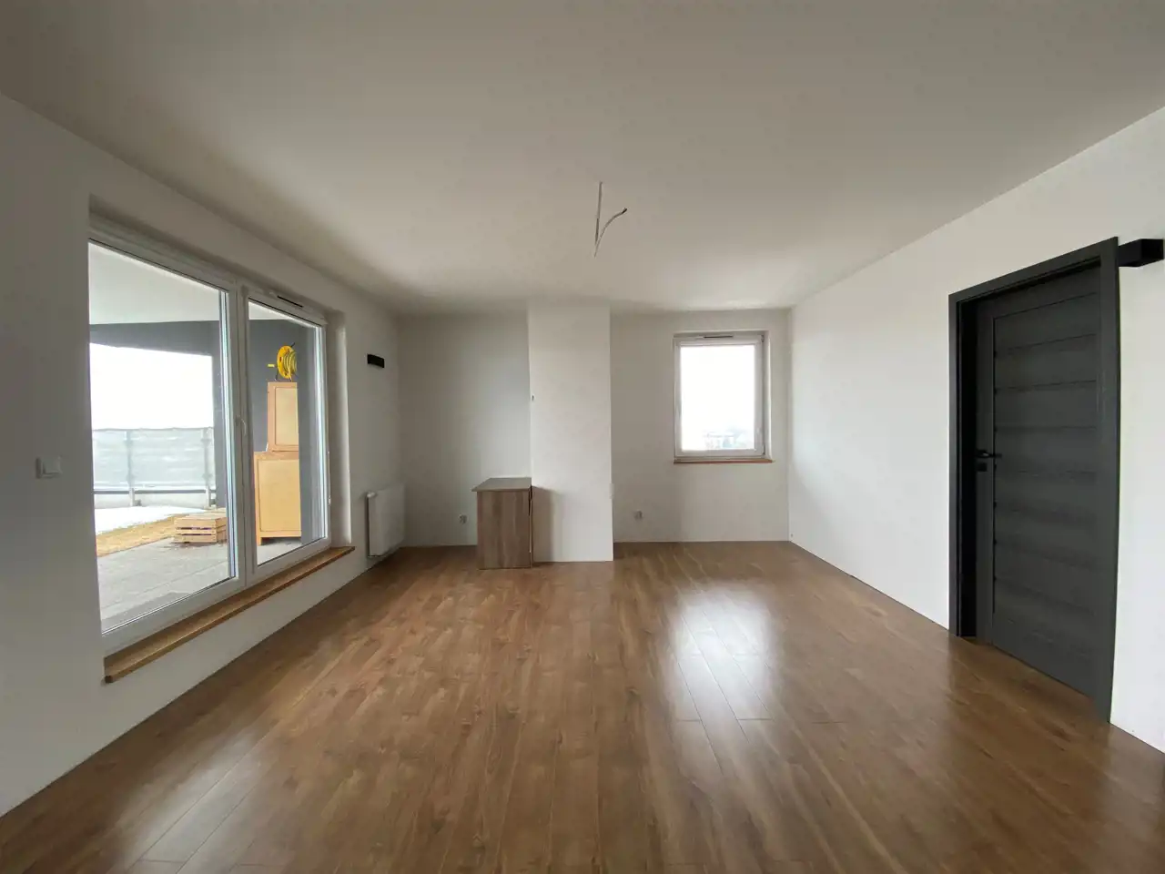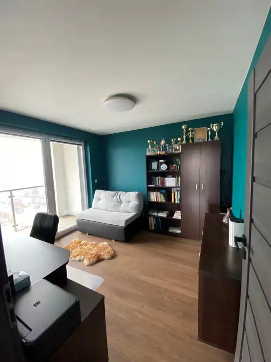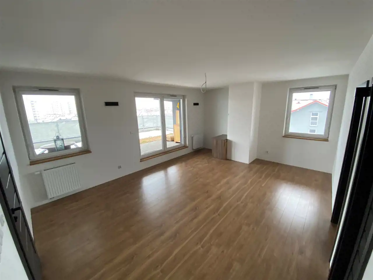 - otwarta przestrzeń - salon z aneksem kuchennym z wyjściem na balkon.