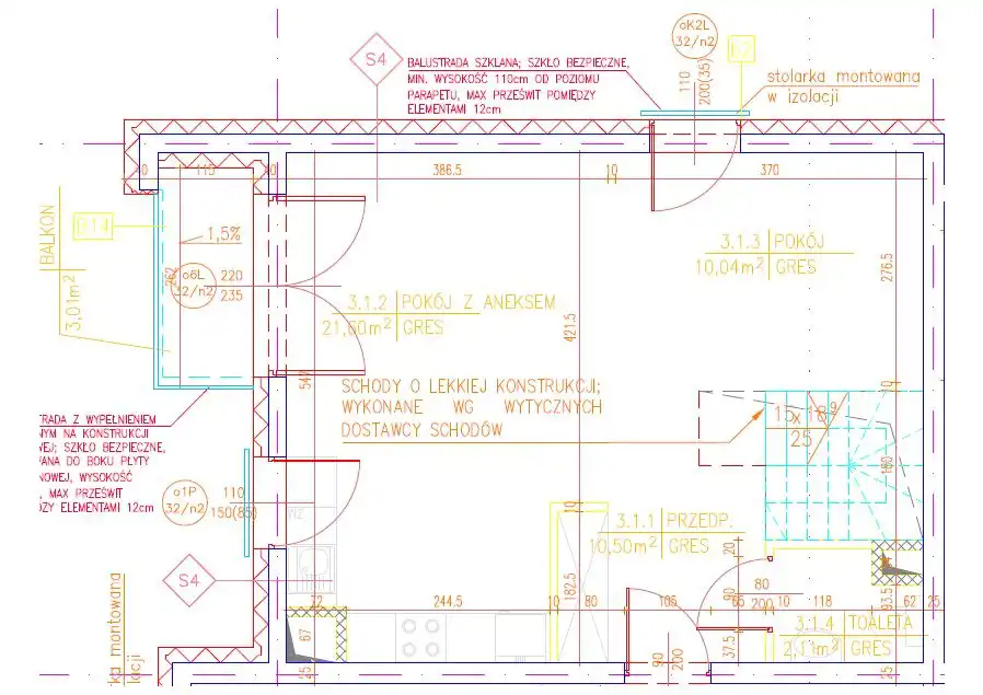 - salon ( możliwość zmiany aranżacji - ściany działowe)