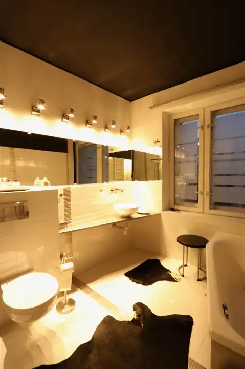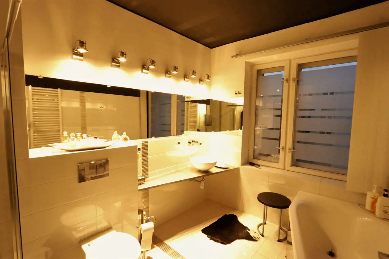 - pokoju kąpielowego z dużym oknem, wanną oraz prysznicem z hydromasażem ok 10 m2
