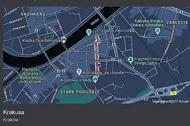Spokojna cicha ulica , w bliskiej odległości od Kazimierza, tylko 600m spacerem do Kładki Ojca Bernatka .