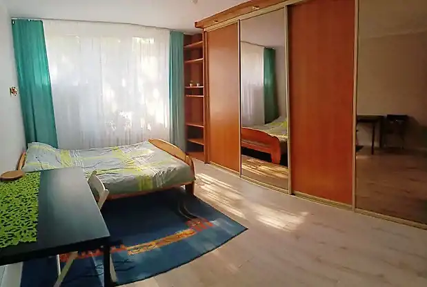 Powierzchnia 24 m², z piwnicą. Składa się z pokoju, aneksu kuchennego, łazienki . W pokoju garderoba na całej ścianie, stół z krzesłami, łóżko. Kuchnia w pełni wyposażona - meble kuchenne w zabudowie, piekarnik z kuchenką gazową, lodówka, stół. Łazienka z prysznicem, WC, umywalka, lustro, szafki łazienkowe. Pralka w garderobie. Mieszkanie jest ciepłe i jasne. Ogrzewanie miejskie. Okna PCV nowe. Idealne mieszkanie dla osób poszukujących lokum w pobliżu centrum Krakowa.