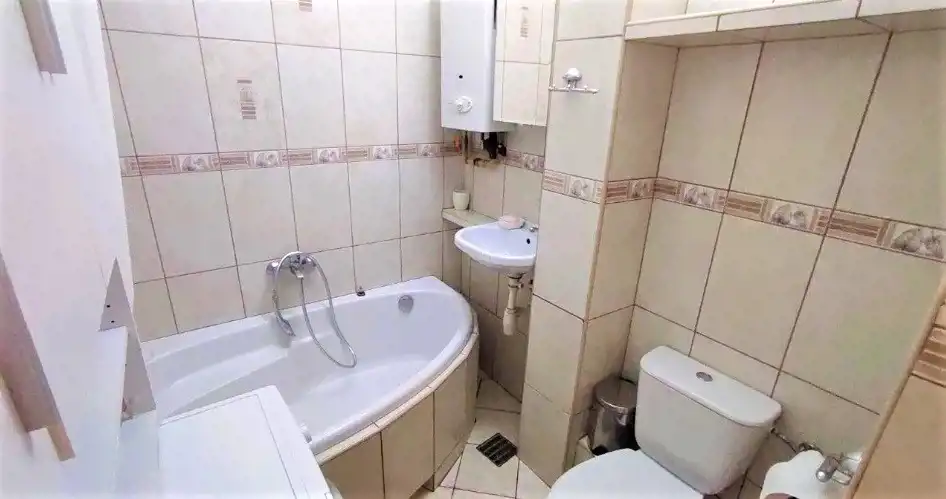 Ogrzewanie z sieci miejskiej, ciepła woda z dwufunkcyjnego pieca gazowego.