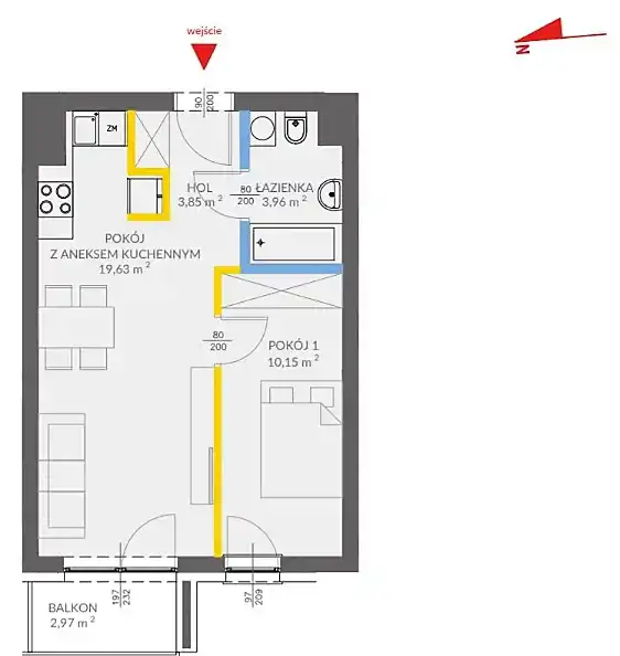 - Charakterystyka mieszkania 38.51 m2, 2 pokoje