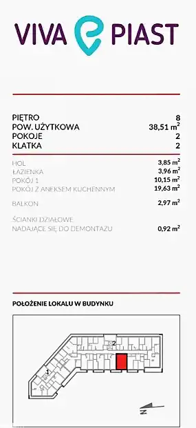 Mieszkanie znajduje się w dzielnicy Mistrzejowice w Inwestycji Viva Piast.
