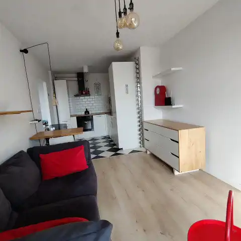 Oferuję Państwu mieszkanie w bloku wybudowanym w 2016, składające się z salonu z kuchnią (18.91m2), łazienki (4.39m2), holu ( 7.15m2), w którym mieści się duża szafa oraz sypialni (9.05m2). Kuchnia w pełni umeblowana. Jak widać na załączonych zdjęciach mieszkanie jest w bardzo dobrym stanie wykończone i urządzone w 2016.