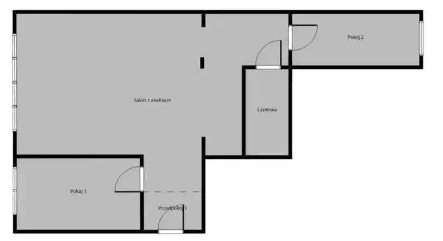 Mieszkanie składa się z przestronnego Salonu z Aneksem Kuchennym (21m2), 2 niezależnych Sypialni (8m2 i 10m2), Łazienki, oraz dwóch Przedpokoi.