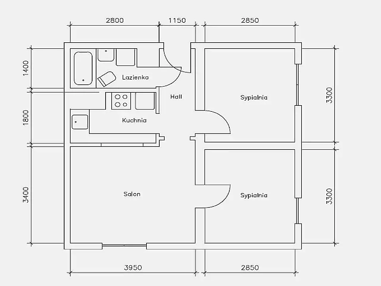 Składa się z dwóch pokoi, salonu, kuchni, łazienki i korytarza. Ściana kuchni do wyburzenia z możliwością utworzenia salonu z aneksem kuchennym.