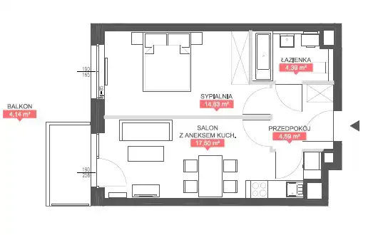 - Charakterystyka mieszkania 41.31 m2, 2 pokoje