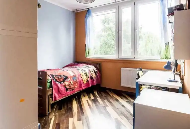 Świetny układ pomieszczeń i dwustronna ekspozycja (południe i północ) sprawiają, że mieszkanie jest bardzo jasne i przestronne, widok z okien rozpościera się na zielone osiedle, park i plac zabaw.