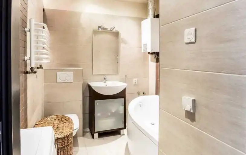 Ogrzewanie z sieci miejskiej, ciepła woda z dwufunkcyjnego pieca gazowego.