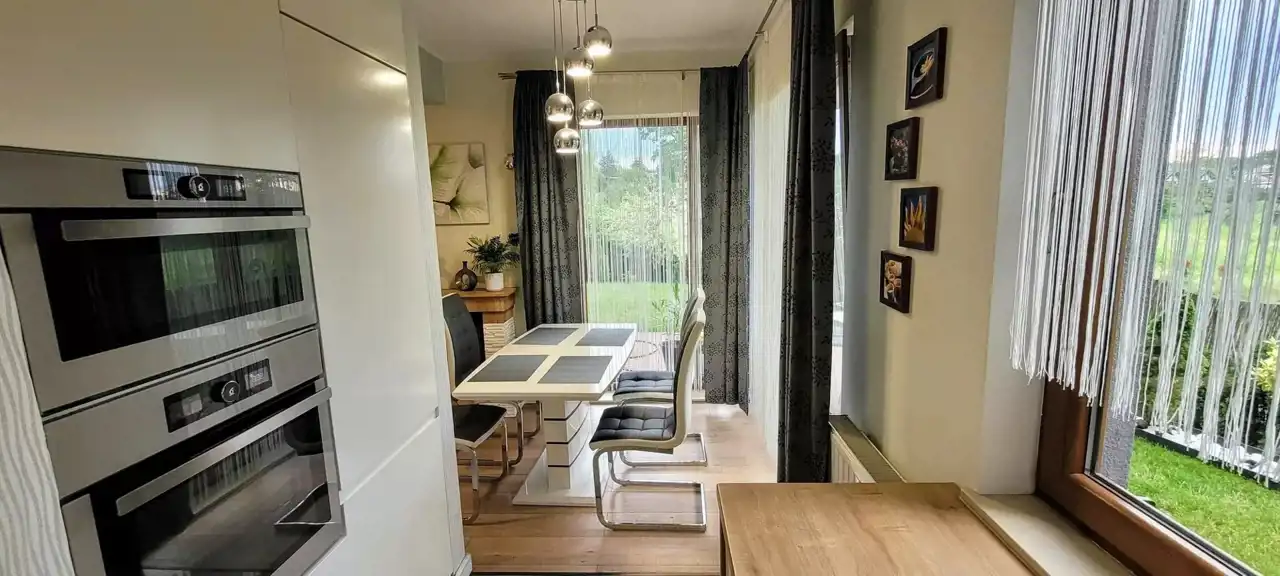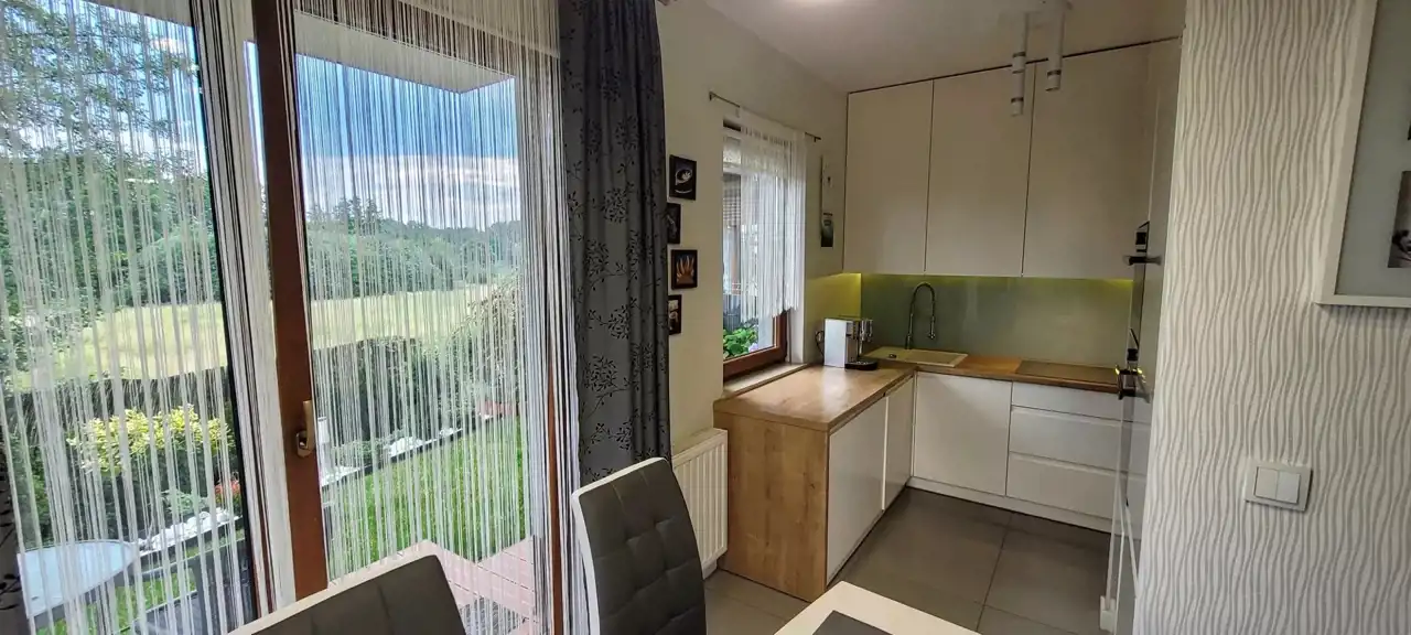 Mieszkanie o powierzchni ok. 37 m2 znajduje się na parterze budynku i składa się z salonu z aneksem kuchennym, sypialni, przedpokoju oraz łazienki oraz wc. Sprzęt AGD w zabudowie: Płyta indukcyjna Whirlpool, piekarnik Whirlpool, lodówka z zamrażalnikiem Whirlpool, kuchnia mikrofalowa Whirlpool, zmywarka BOSCH.