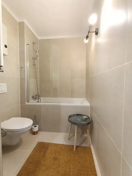 Ogrzewanie z sieci miejskiej, ciepła woda elektryczna.