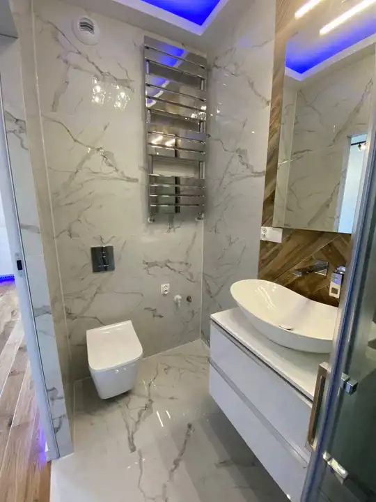Ogrzewanie i ciepła woda z sieci miejskiej . W łazience dodatkowo ogrzewanie podłogowe