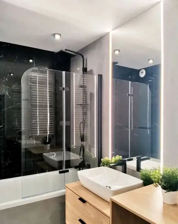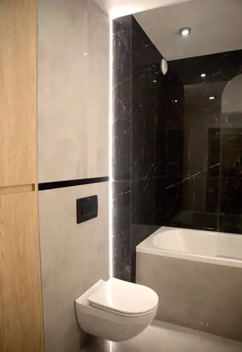 Wykończony z wysokiej jakości materiałów, według projektu architekta wykorzystując najnowsze trendy oraz maksymalizując funkcjonalność mieszkania, mimo niewielkiej powierzchni.