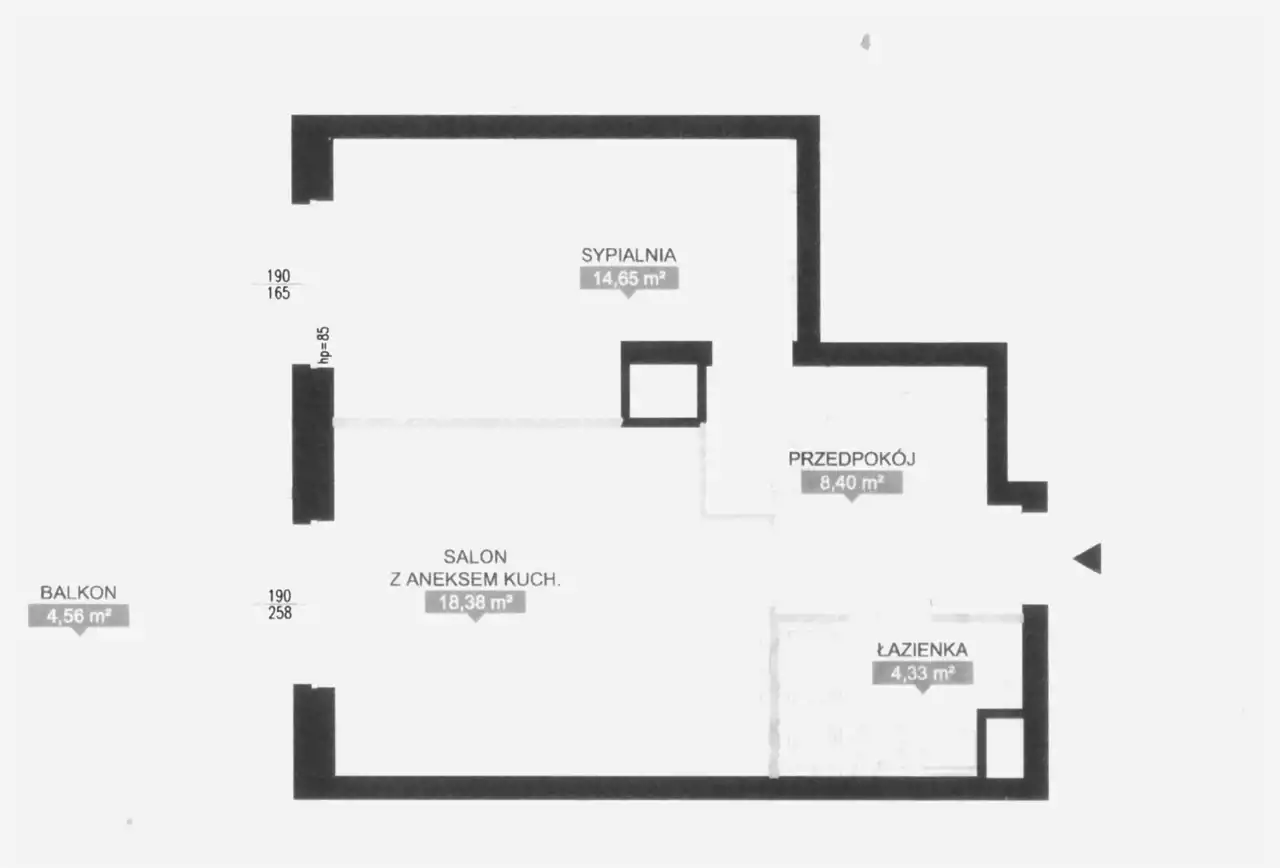 - Charakterystyka mieszkania 45.76 m2, 2 pokoje