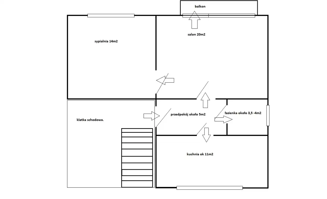 Mieszkanie składa się z przedpokoju ,salonu dziennego ; osobnej jasnej kuchnio - jadalni ,sypialni , łazienki z WC; balkonu oraz 2-piwnic.