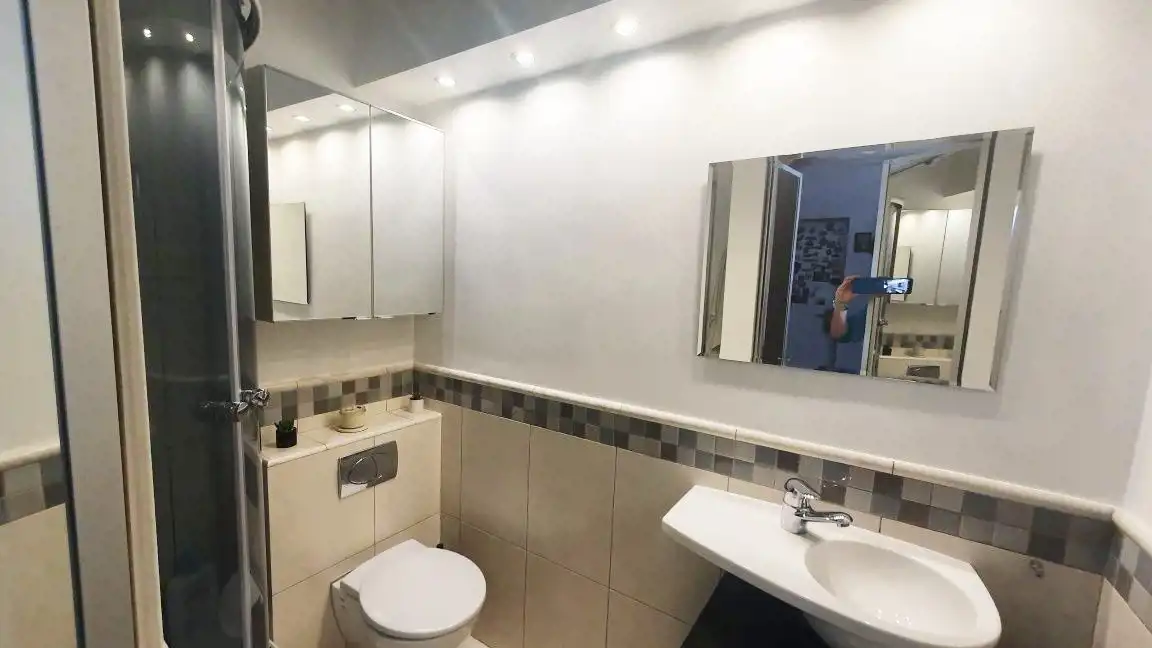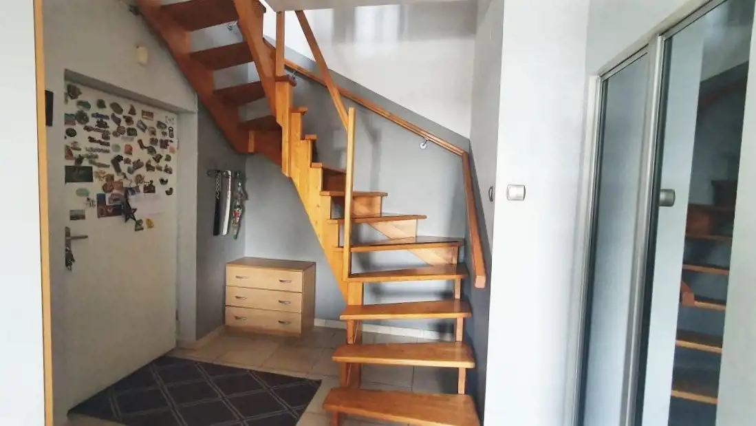 -na drugim poziomie dwa oddzielne pokoje (około 12m2 i 13m2), łazienka z wanną 3,6m2, garderoba, przedpokój.