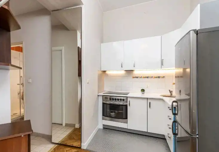 składa się z dwóch nieprzechodnich pokoi, kuchni z kącikiem jadalnym, łazienki z kabiną prysznicową oddzielona szklanymi drzwiami, umywalką i WC ( Geberit ) , na wyposażeniu pralka, na ścianie i podłodze kafelki oraz przedpokoju z zabudowaną szafą. Pokoje w pełni umeblowane, kuchnia zabudowana z wysoką lodówką, kuchenką z płytą ceramiczną i piekarnikiem. Mieszkanie po kapitalnym remoncie w 2020 r. W pokojach na podłodze parkiet.