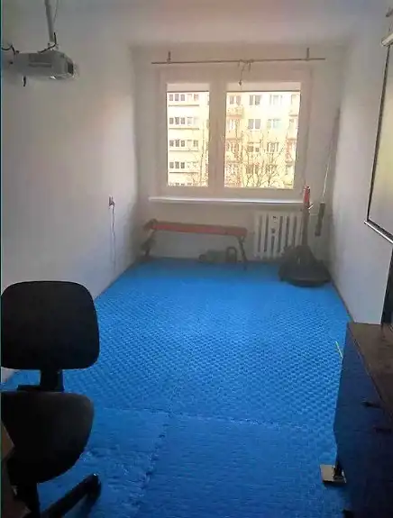 Mieszkanie wyposażone jest również w drążek, ławeczkę i inne przyrządy do ćwiczeń. Na ścianie rzutnik -fajna opcja na leniwe wieczory. W Kuchni zostaje cała zabudowa oraz nowa zmywarka, kuchenka gazowo-elektryczna, lodówka, ekspres do kawy.