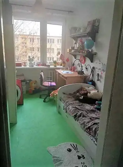 gładzie na ścianach, okna PCV, dodatkowo piękny i zadbany parkiet (w stanie idealnym) który przeszedł renowacje w 2020roku, w sypialni i pokoju dziecięcym obecnie znajduje się mata zabezpieczająca, wymienione drzwi wewnętrzne.