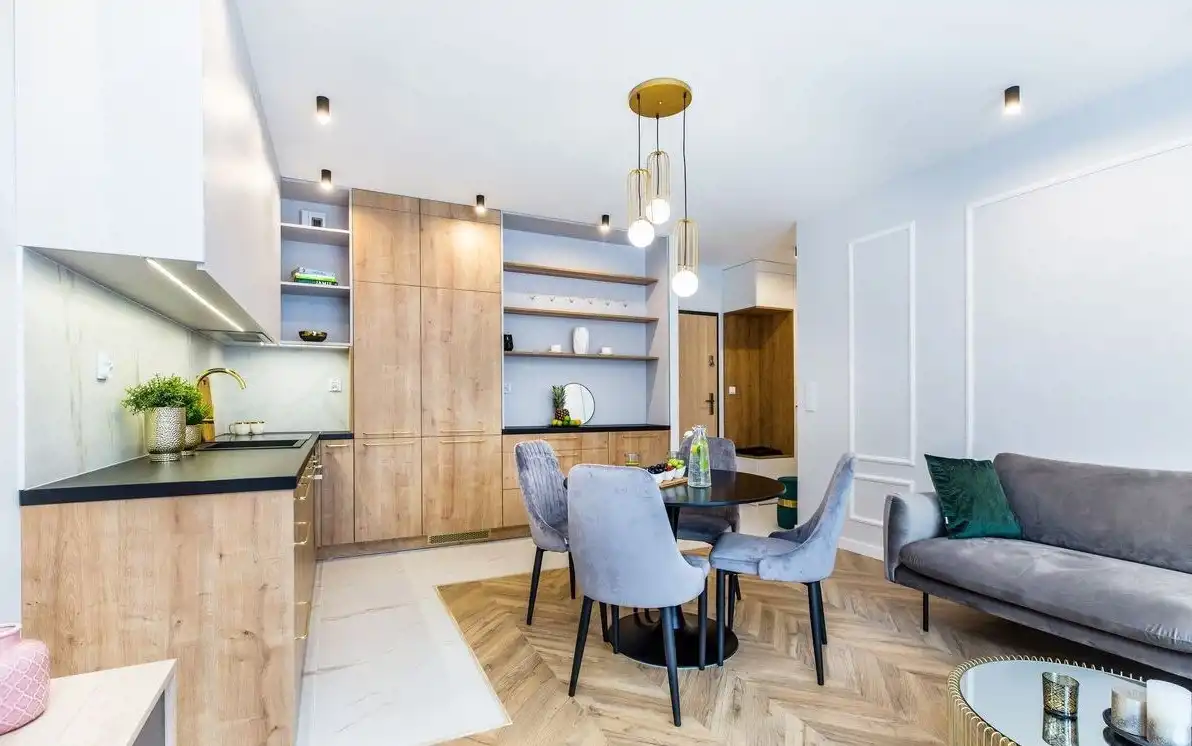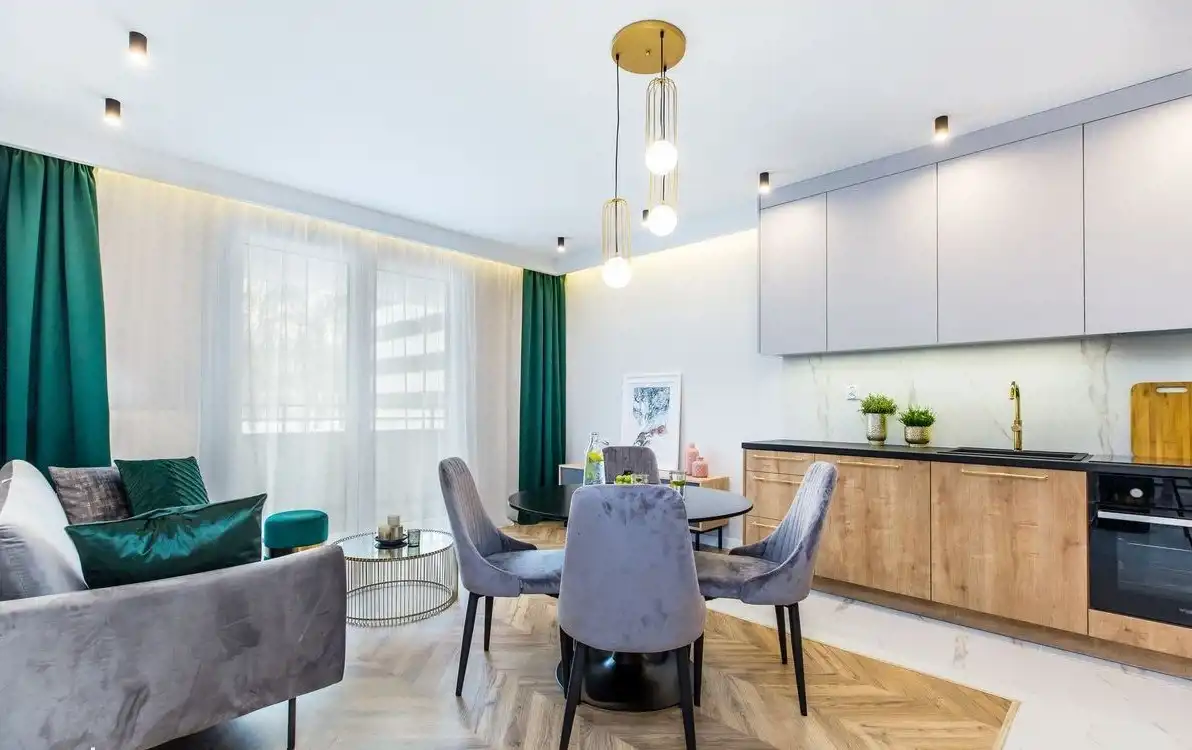 Jest urządzone według projektu, z zachowaniem obecnych trendów wnętrzarskich. W pełni wyposażone w sprzęt AGD oraz wysokiej jakości mebli, zrobionych na wymiar.