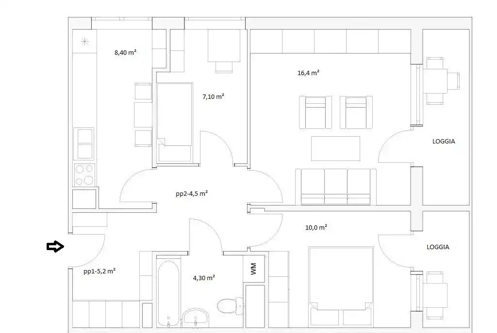 Do mieszkania przynależą także dwa zabudowane balkony (loggie)
