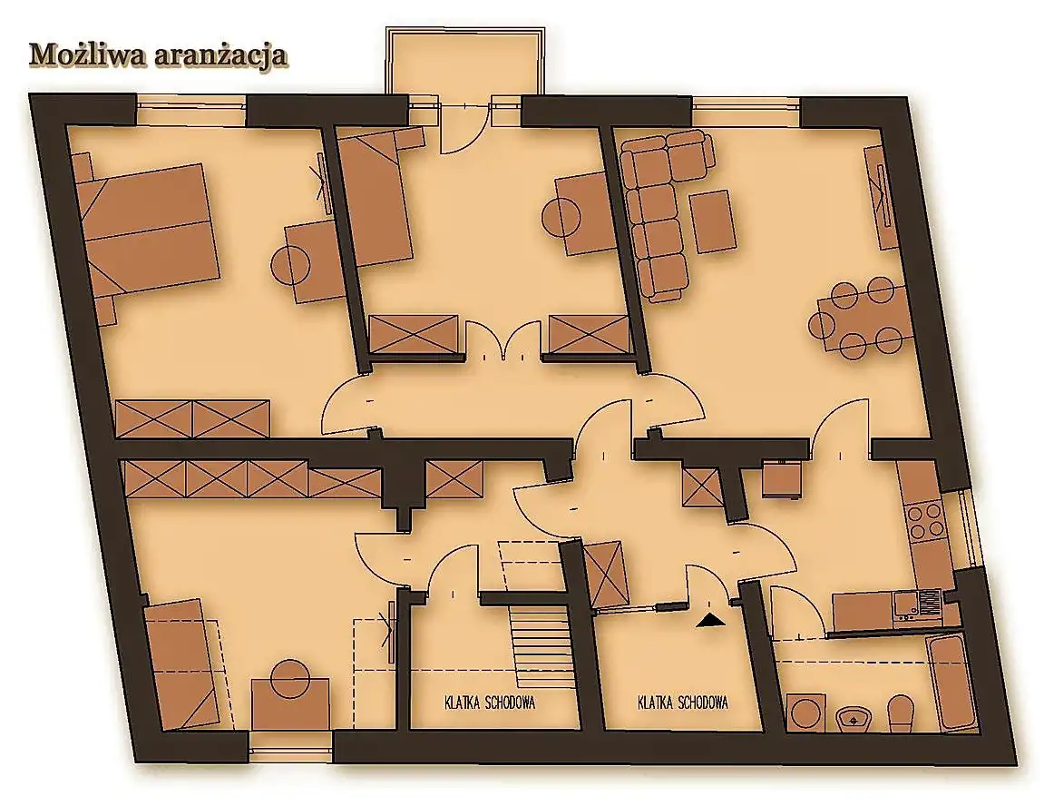 Możliwe jest powiększenie mieszkania o przynależną część poddasza tj. o około 41,75m2 (po podłodze), co pozwoli na wydzielenie 2 dodatkowych pokoi. Mieszkanie można również w prosty sposób podzielić na 2 lub 3 oddzielne mieszkania.