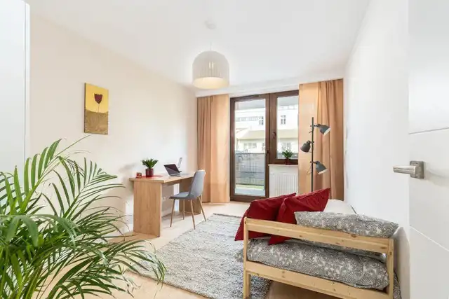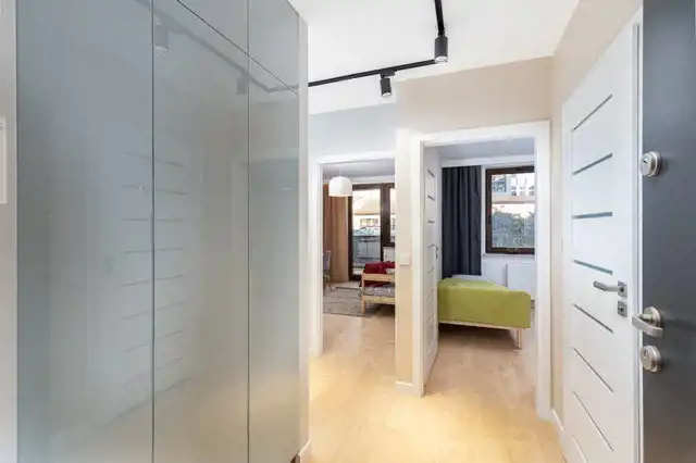 Mieszkanie znajduje się na parterze, ekspozycja wschodnia i ma 38.5 m2 powierzchni i dodatkowo balkon o powierzchni 4.5 m2. Oferuje 2 osobne pokoje oraz niezależną kuchnię. Kuchnia i łazienka zostały zaprojektowane na wymiar i wykonane z dbałością o każdy szczegół, są w pełni wyposażone w sprzęty AGD. Do mieszkania jest możliwość dokupienia miejsca postojowego na platformie górnej w cenie 60.000 zł (nieobowiązkowo).