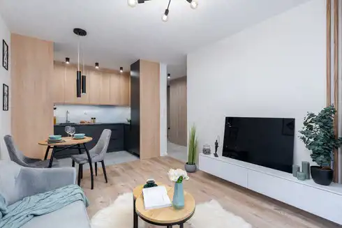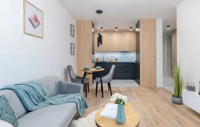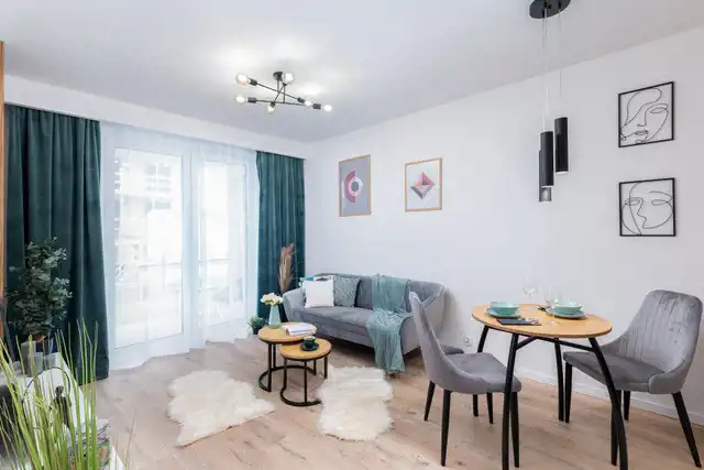 Mieszkanie wykończone w najwyższym standardzie, w pełni umeblowane oraz wyposażone w niezbędne sprzęty.