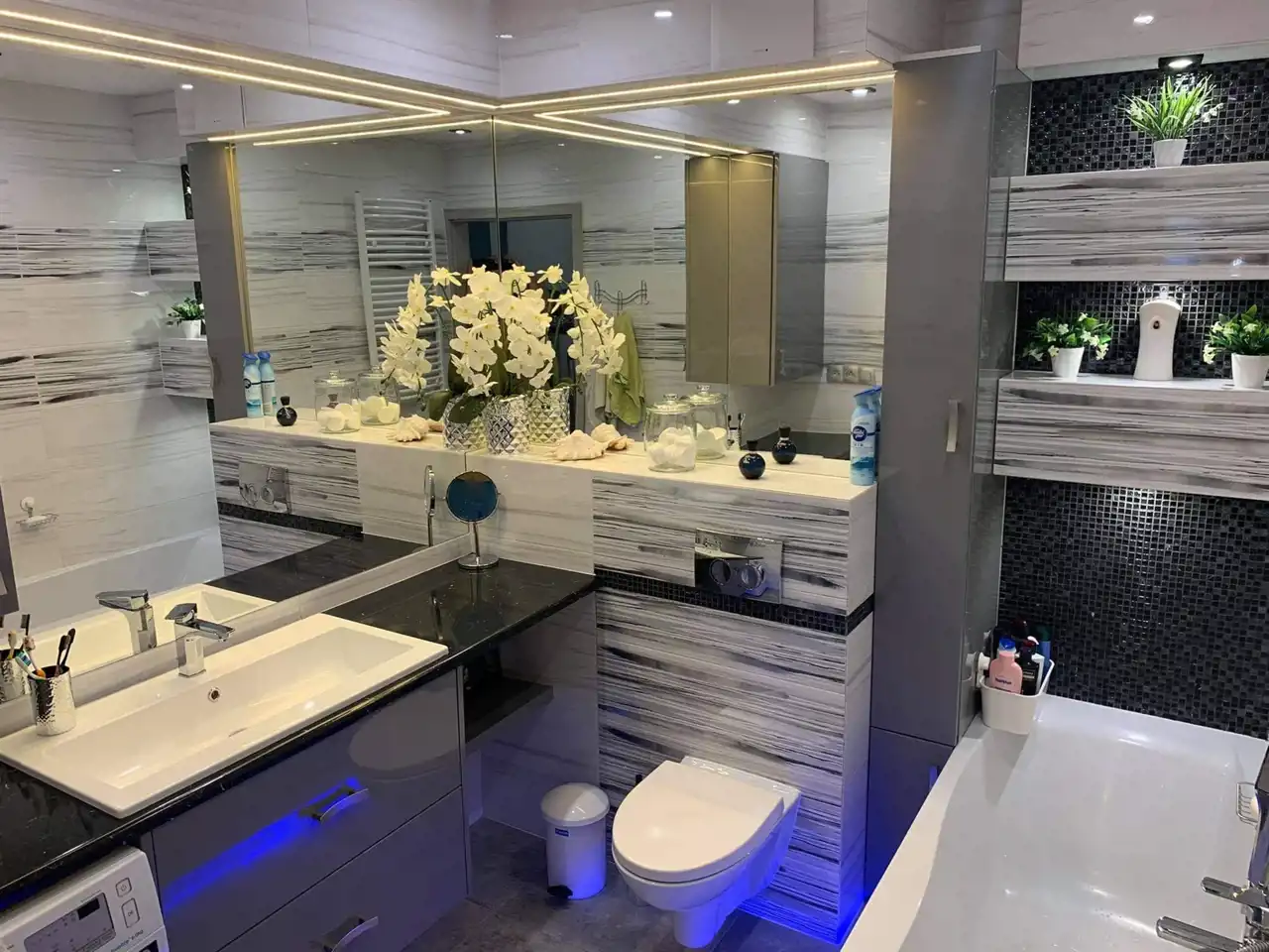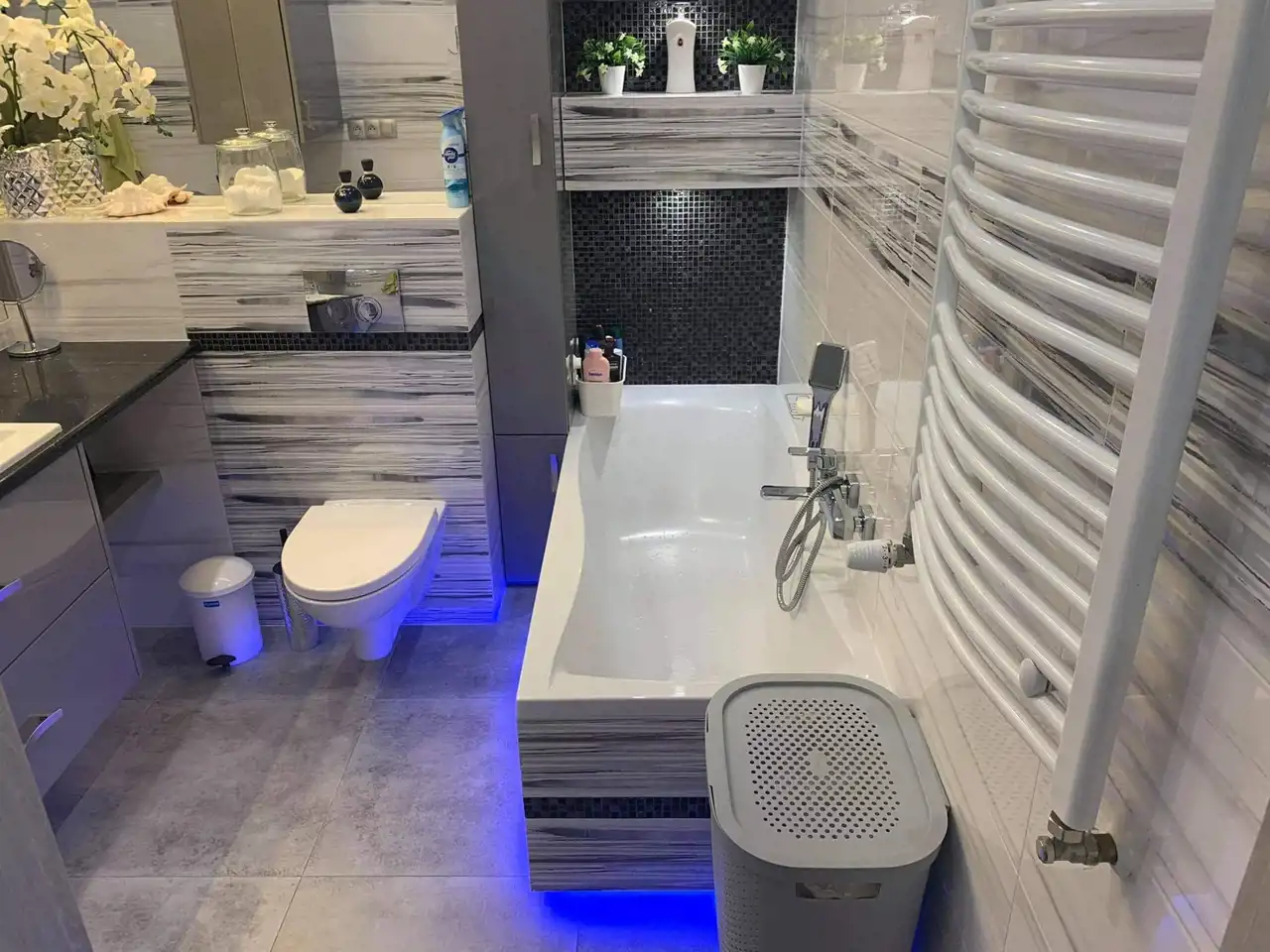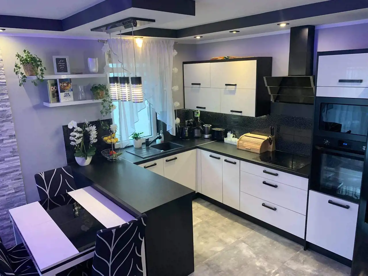 Umeblowanie wraz ze sprzętem AGD i RTV (w większości marki Samsung, lodówko-zamrażarka Samsung z kostkarką i podajnikiem wody) w cenie. Energooszczędne oświetlenie LED. Duże szafy z przesuwnymi drzwiami w sypialniach i przedpokoju. Zabudowana kuchnia meblami na wysoki połysk + pojemna wyspa. Stół rozkładany do ponad 2 metrów. Żaluzje dzień / noc. Automatyczne rolety antywłamaniowe na pilota.