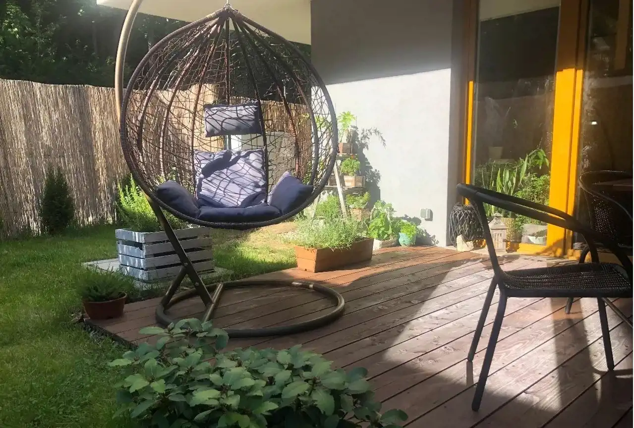 Z każdego pokoju dostaniecie się do otaczającego mieszkanie ogródka, który podwaja jego powierzchnię. Wychodząc z salonu traficie na drewniany taras - wspaniałe miejsce do odpoczynku z widokiem na okalający osiedle kamieniołom. Śpiew ptaków w centrum Krakowa - tak, na Wielickiej Garden to codzienność.