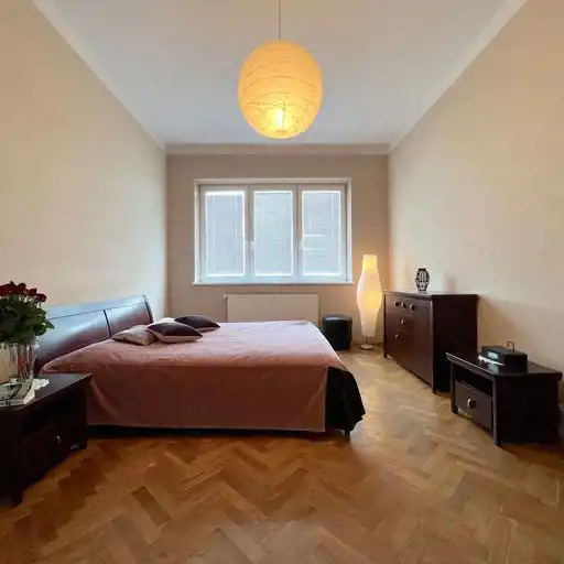 Mieszkanie o łącznej powierzchni 73,5 m2 mieści się na piątym piętrze zabytkowej odrestaurowanej kamienicy z windą i składa się z: