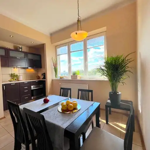 Jest także w pełni umeblowany i wyposażony- lokal jest gotowy do wprowadzenia się. W salonie zestaw wypoczynkowy, w sypialni duże łóżko, w pełni wyposażona kuchnia oraz łazienka.