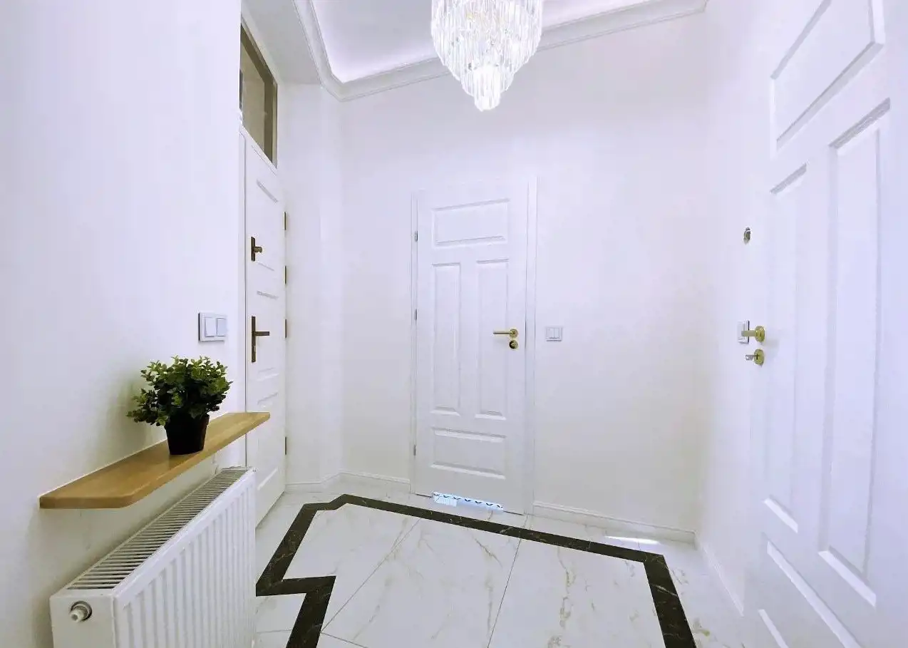 równane oraz pokryte gładzią i farbą w całym lokalu, dekory ścienne i sufitowe, sztukateria, nowe