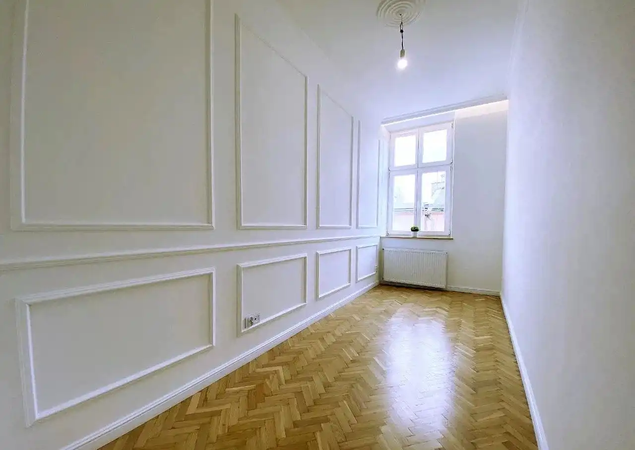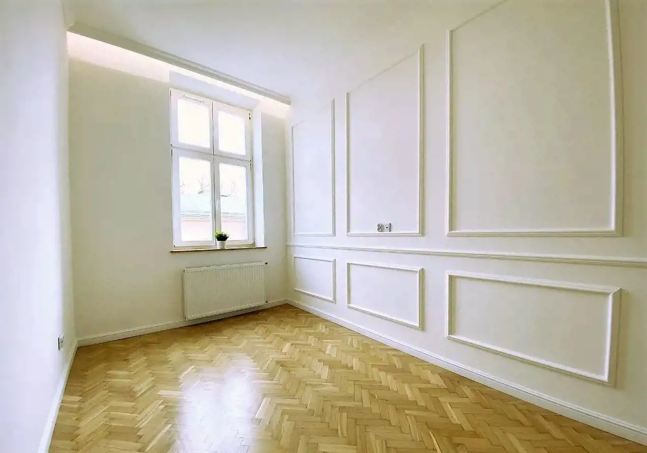 skrzydłowe ocieplane robione na wymiar, parkiet dębowy z lat 30 cyklinowany