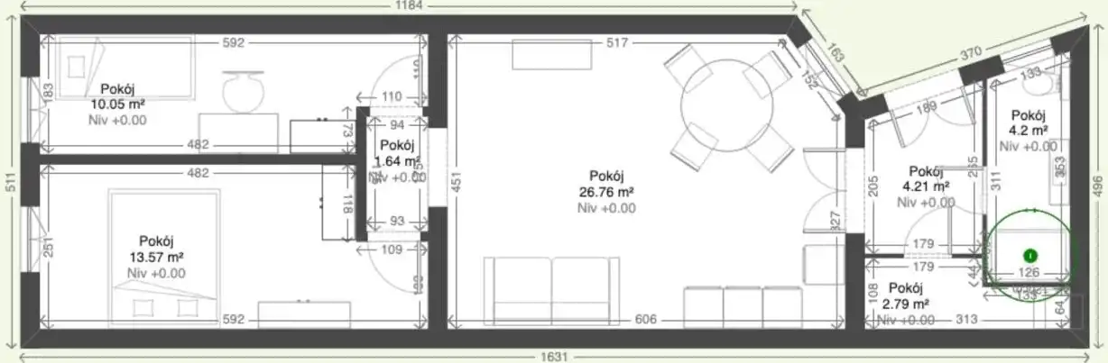 - Charakterystyka mieszkania 62.5 m2, 3 pokoje