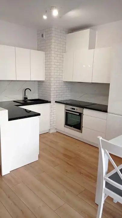 Mieszkanie jest wykończone w wysokim standardzie , duży jasny pokój z aneksem kuchennym umeblowanym i wyposażonym w dobrej jakości sprzęt AGD ,ekspozycja okien w salonie zachodnia , przestronna , jasna sypialnia z ekspozycją okien na wschód , widok na dziedziniec ,bardzo elegancka łazienka z kabiną prysznicową oraz przedpokój z szafą .