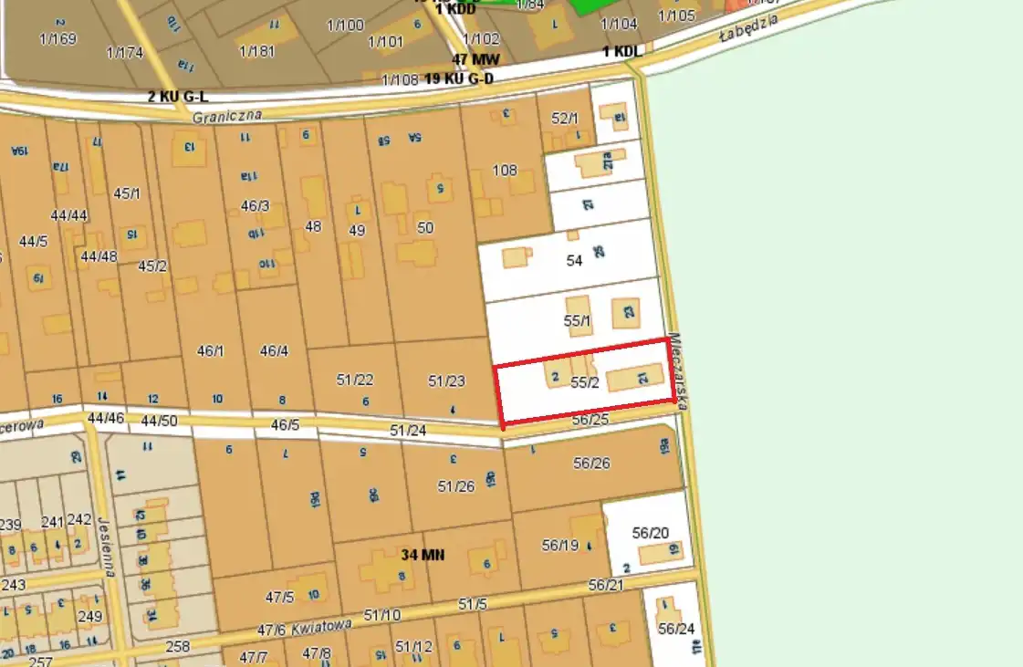 Nowa Iwiczna, ul. Mleczarska 7, działka budowlana o powierzchni 1950 m2, szerokość: 26 m, długość: około 75 m.