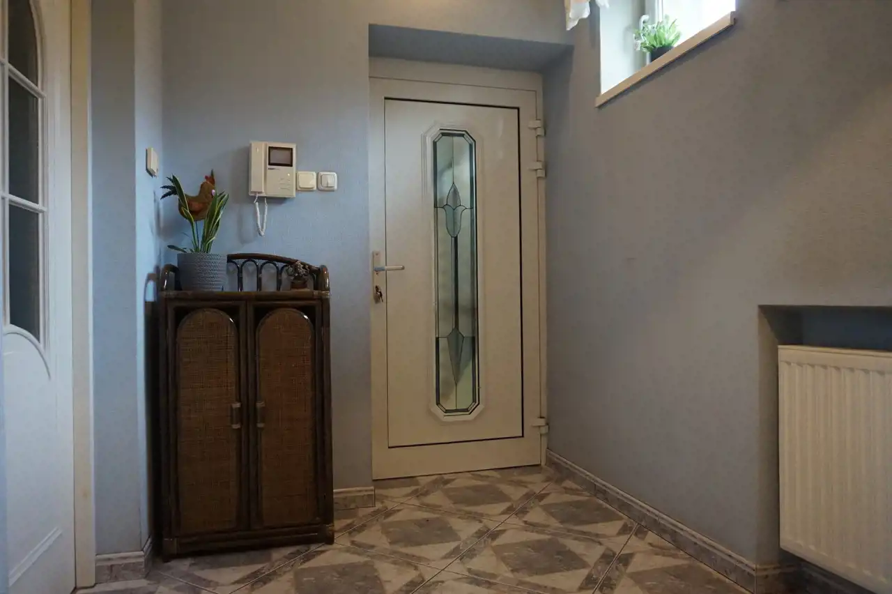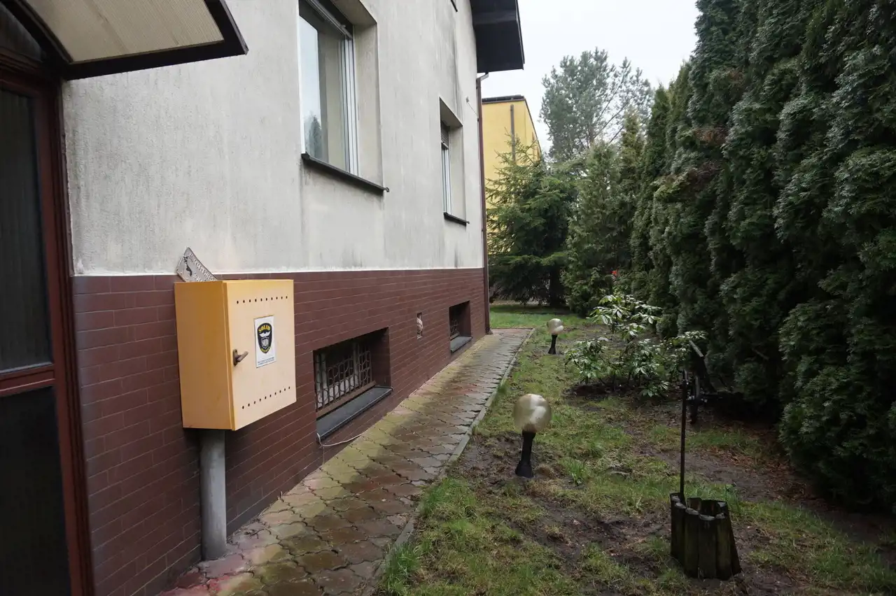Okna pcv zabezpieczone roletami zewnętrznymi, drzwi wejściowe antywłamaniowe. Ogrzewanie domu centralne gazowe. Instalacja wodna miedziana, elektryka także miedziana.