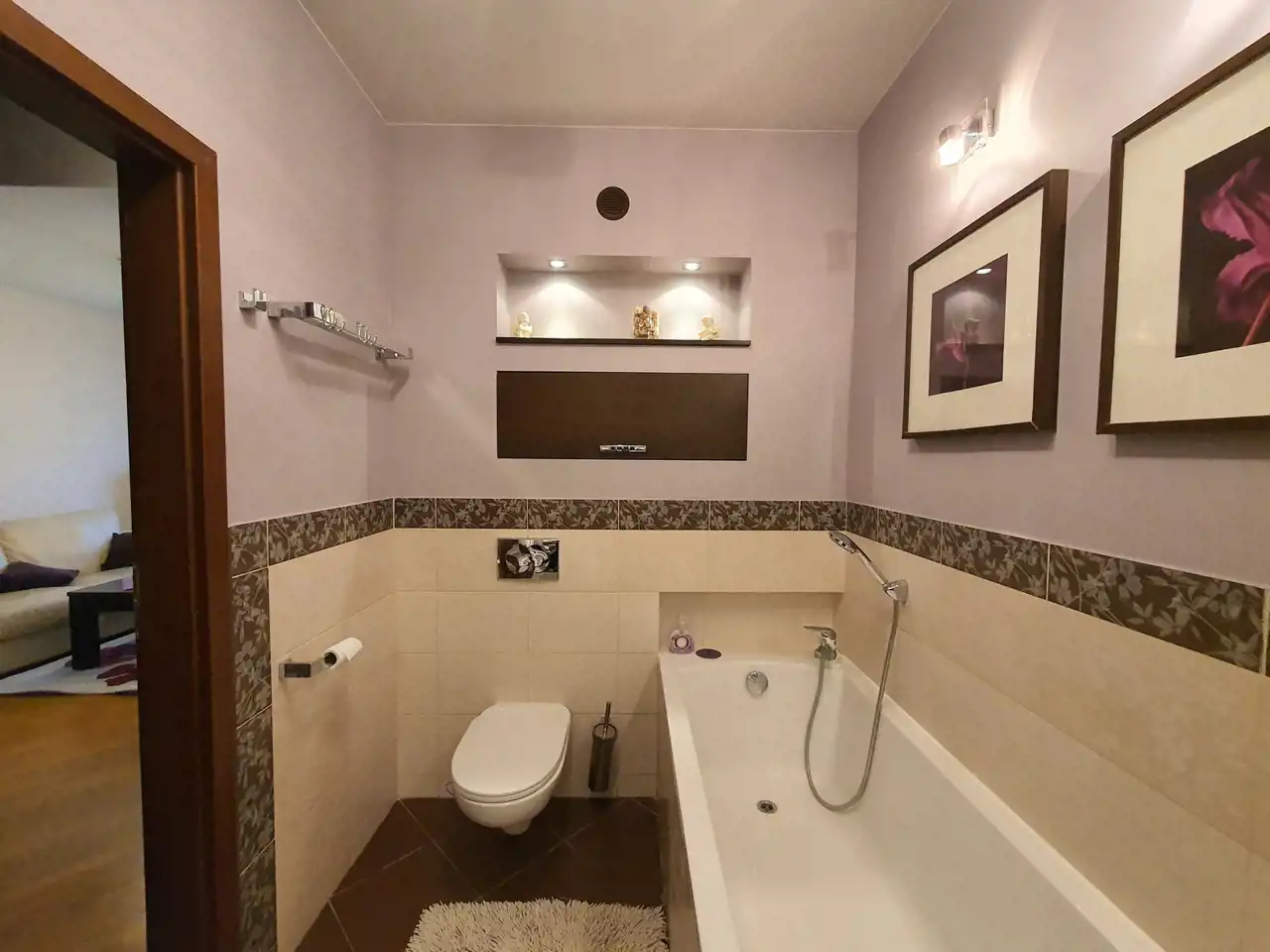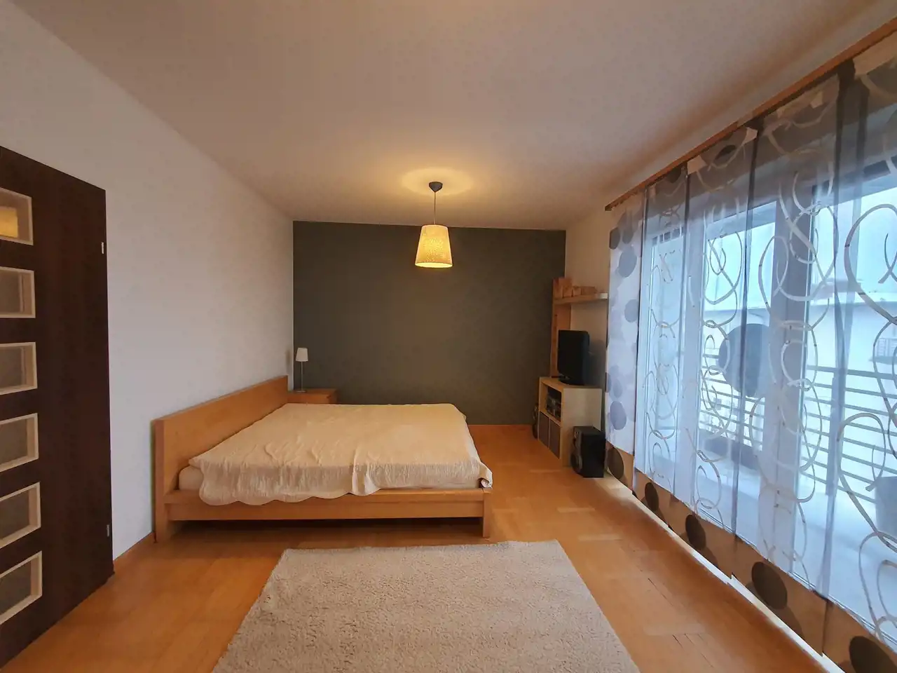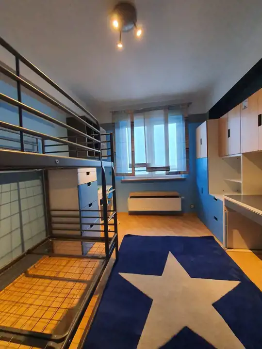 Lokal składa się z widnego salonu o pow. ok. 24 m. kw połączonego z otwartą kuchnią o pow. ok 5 m.kw., dwóch oddzielnych sypialni o pow. ok. 21 m.kw. i 12 m. kw., łazienki o pow. ok. 4 m.kw., przedpokoju o pow. około 4 m.kw. i pom. gosp. o pow. 2 m.kw. W pokojach i kuchni na podłodze położono parkiet, na ścianach gładź gipsowa, pomalowana, zastosowano oświetlenie LED. Łazienka w glazurze i terakocie. W łazience znajduje się umywalka, wanna i meble łazienkowe i wc. Kuchnia również w pełni umeblowana i wyposażona w sprawny sprzęt AGD (zmywarka, piekarnik elektryczny, płyta gazowa, okap, mikrofalówka, szafki).Dodatkowym atutem mieszkania jest pomieszczenie gospodarcze w którym znajduje się pralka i suszarka.