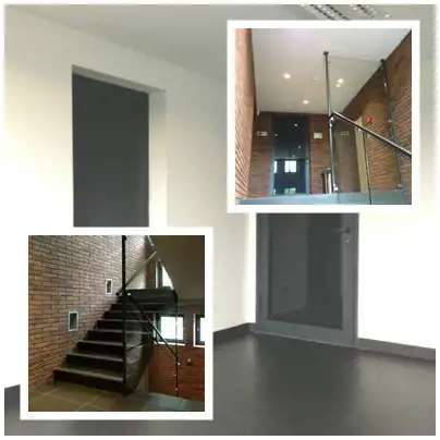 Ściany korytarzy i elewacja zewnętrzna wyłożona jest powierzchnią przypominającą cegłę, co również czyni budynek godną siedzibą biur i zarządów firm, a przy tym cała posesja posiada ocieplenie ścian, które będzie jeszcze modernizowane, co podniesie termoizolacyjność i poprawi komfort termiczny wewnątrz pomieszczeń biurowych.