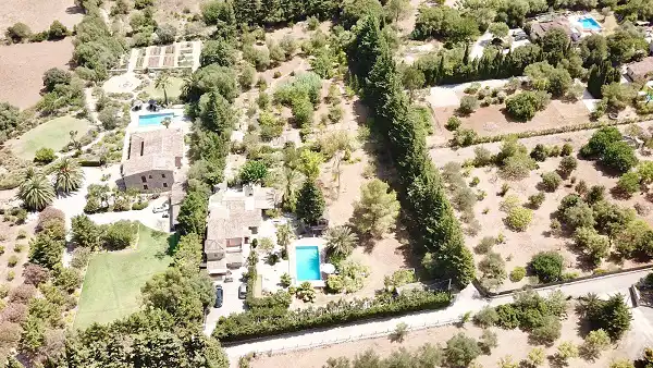 Posiadłość położona w pięknej dolinie otoczonej wzgórzami z widokiem na majestatyczne góry Sierra de Tramuntana. 2,5 km od starego miasta w uroczej miejscowości Pollnesa. 3,2 km od pola golfowego Pollensa Golf Club. Niecałe 10 km do plaży. W zasięgu 5 min dostępne są sklepy, przychodnia, liczne bary i restauracje serwujące lokalne przysmaki. 15 min drogi do przystani i centrów sportów wodnych w Puerto Pollensa i Cala San Vicente.