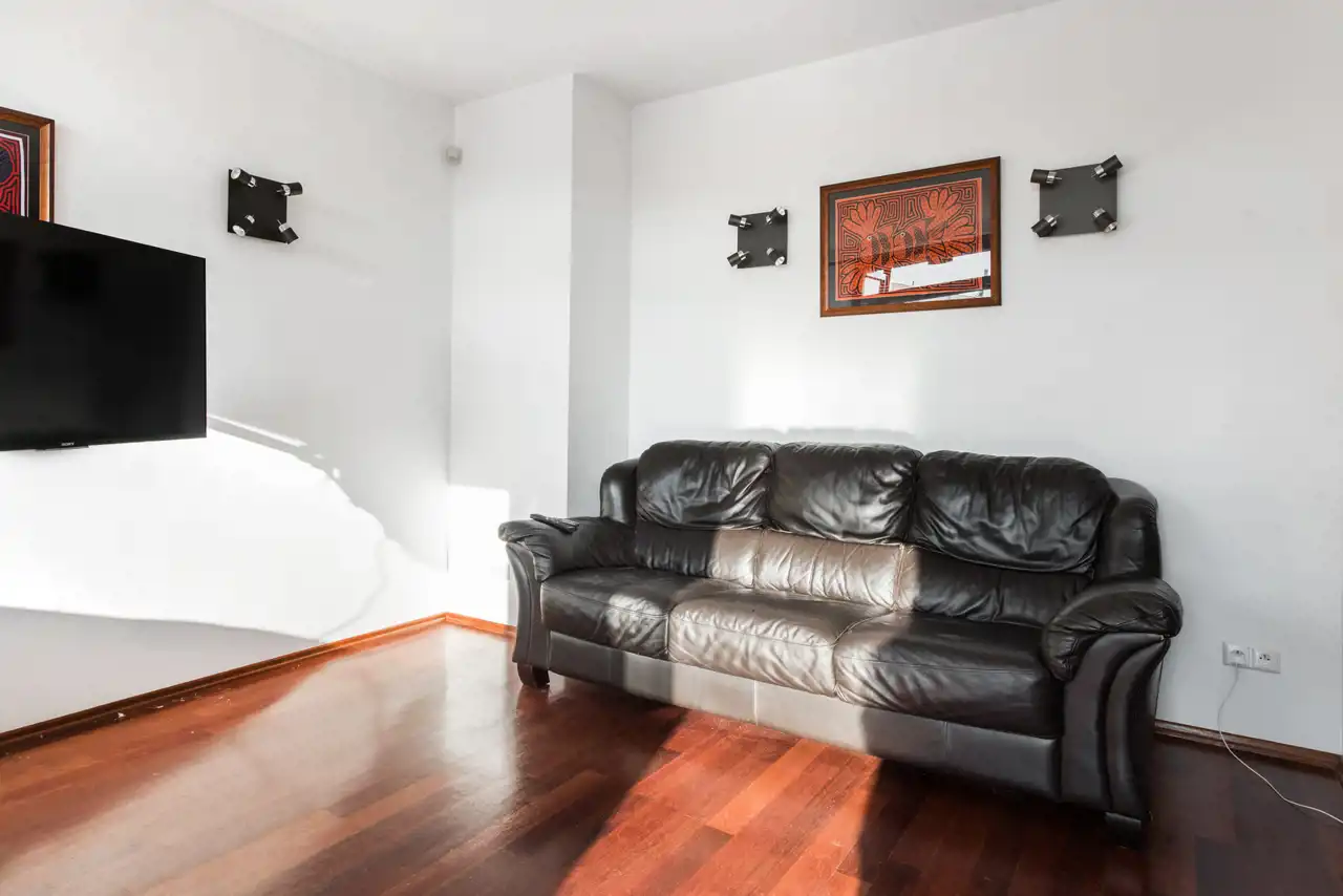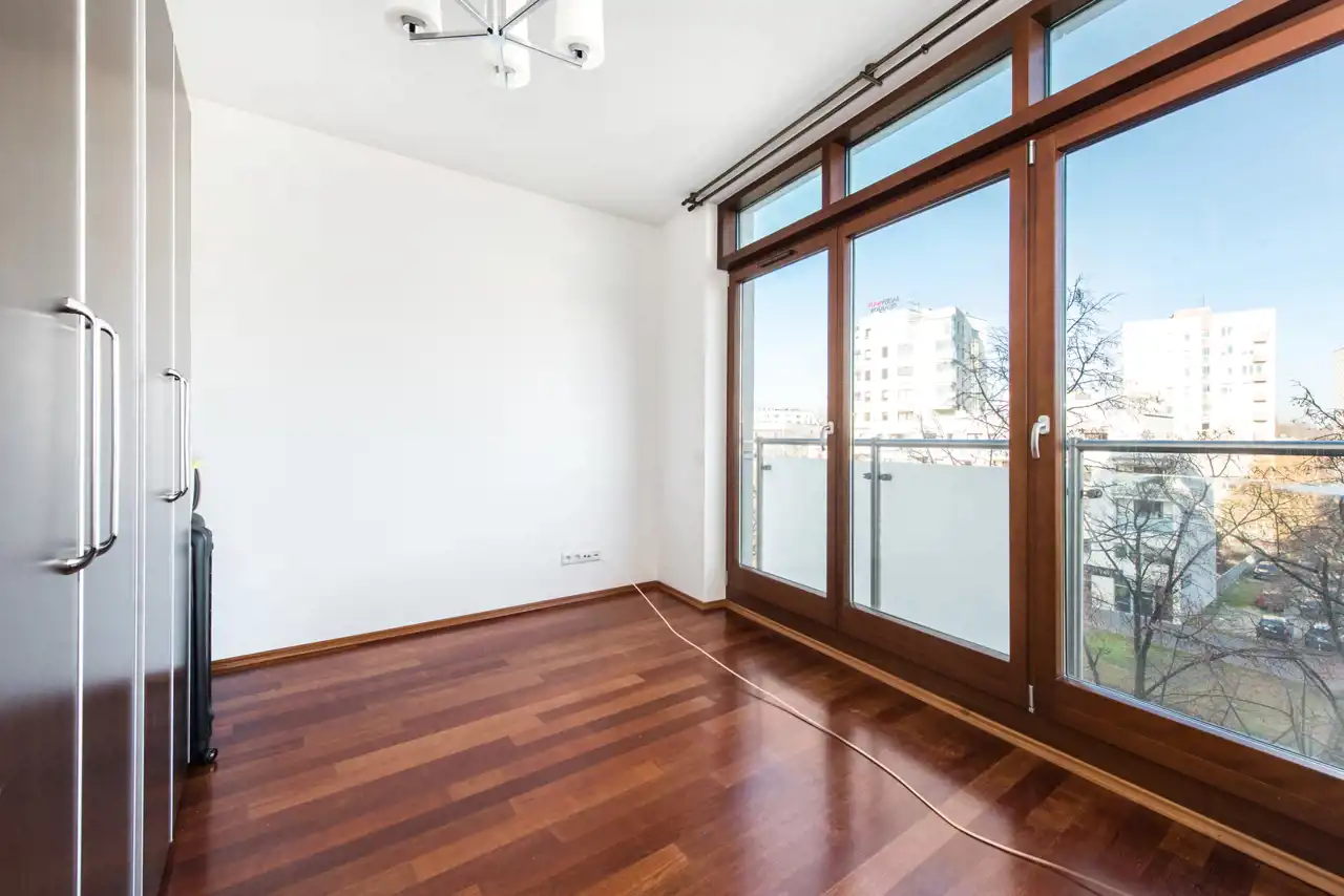 Wysoki sufit 2,7 m2 daje poczucie przestrzeni, a dzięki dużym oknom pomieszczenia są eleganckie i doskonale doświetlone.