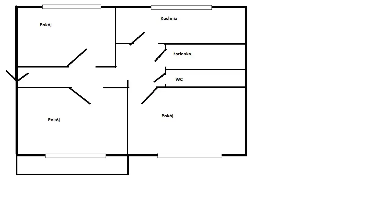 Mieszkanie 3 pokojowe o powierzchni 64,4m2 na 2 piętrze w 2 piętrowym bloku z cegły z lat 70-tych XXw w bloku spółdzielczym we wsi odległej 15 km od Choszczna.